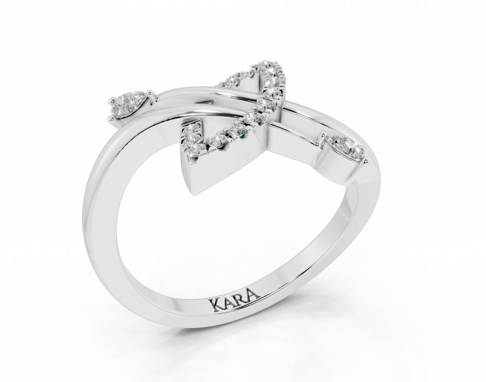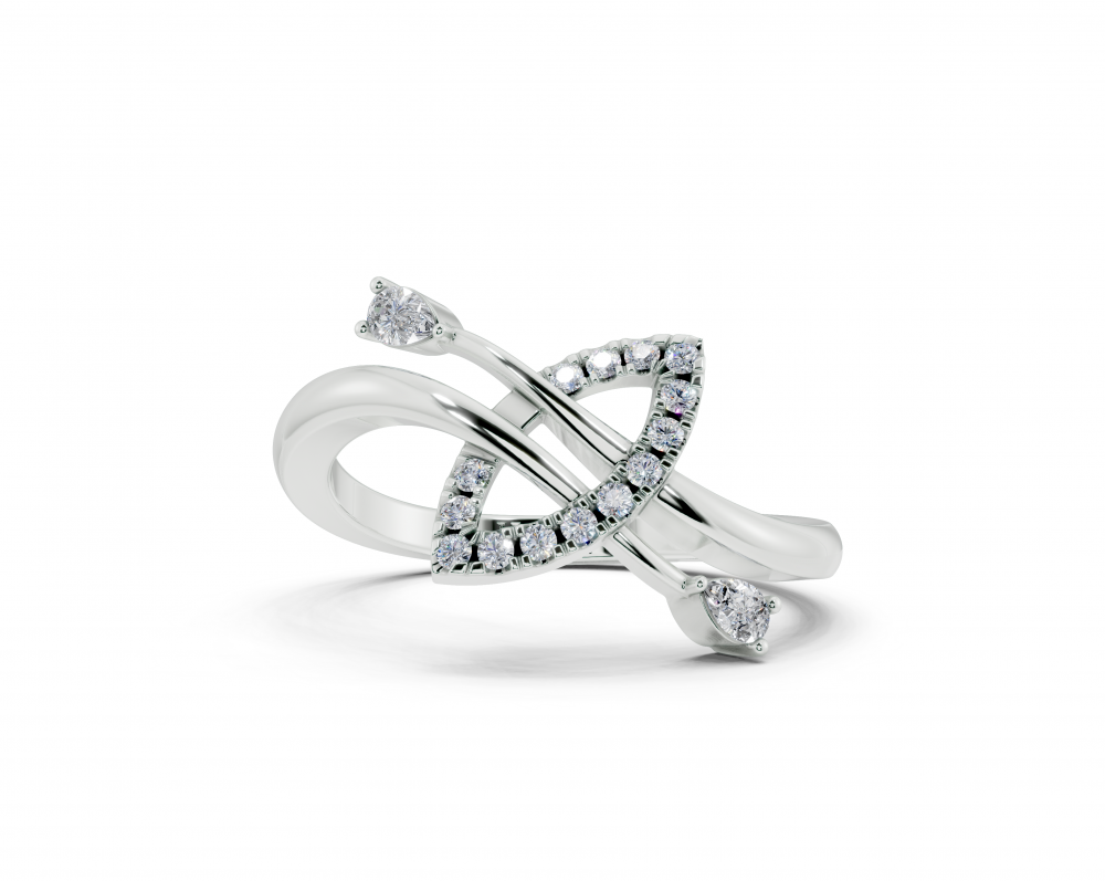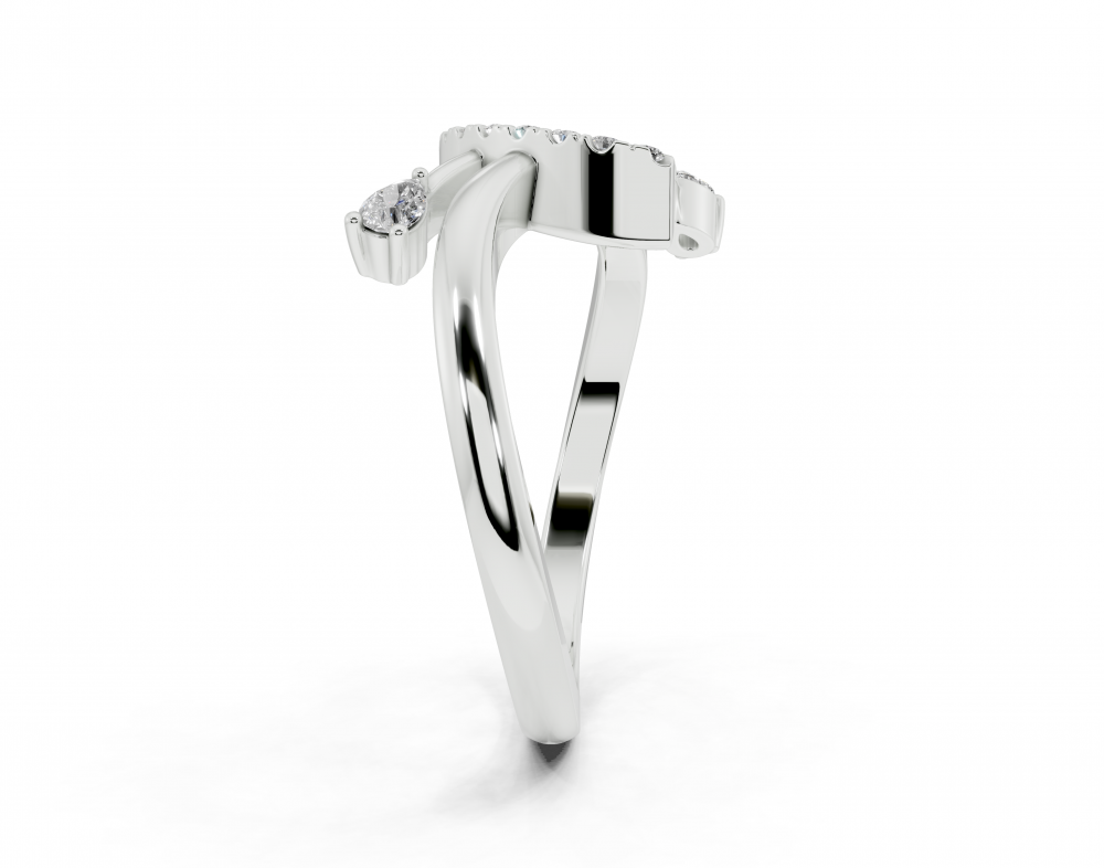 14K white gold ring with 0.10 ct Pear Cut diamonds and 0.09 ct round diamonds. Ring weight is approximately 3.50 grams. The ring can also be made to order in 18K gold. We can modify the design according to your budget.