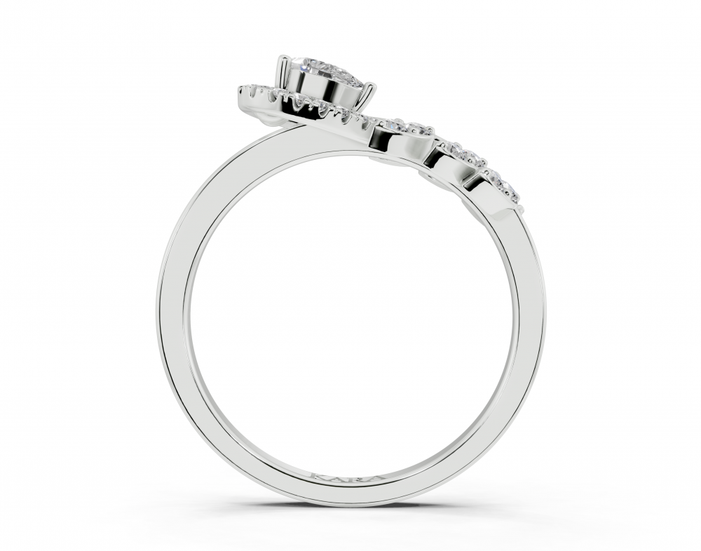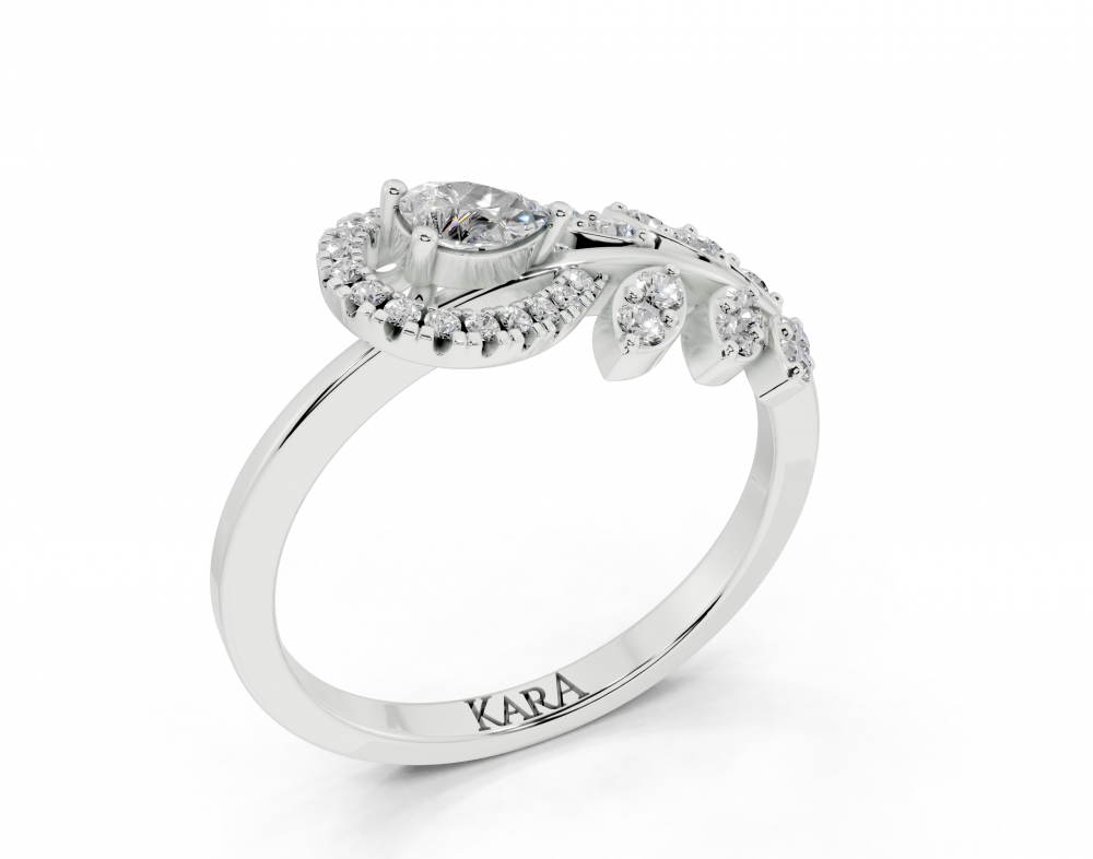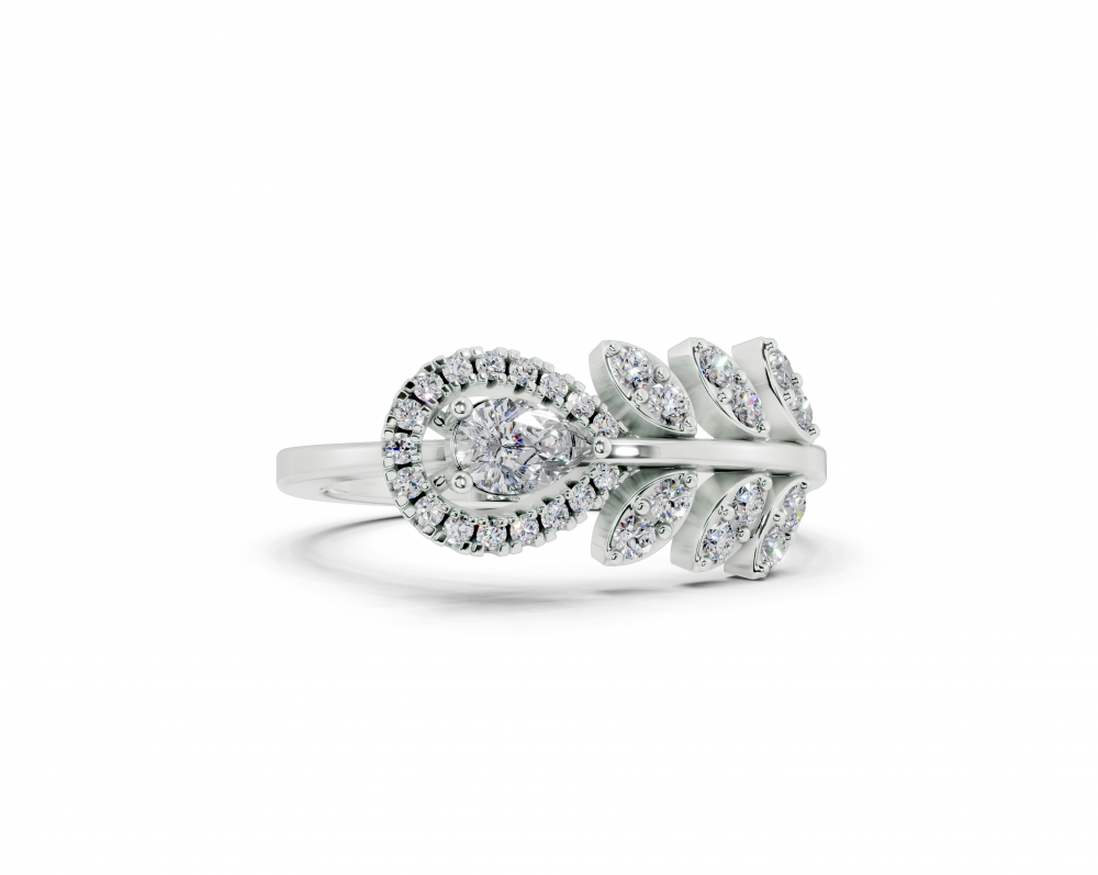 14K white gold ring with 0.14 ct Pear Cut diamonds and 0.22 ct round diamonds. Ring weight is approximately 2.50 grams. The ring can also be made to order in 18K gold. We can modify the design according to your budget.