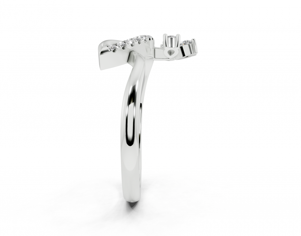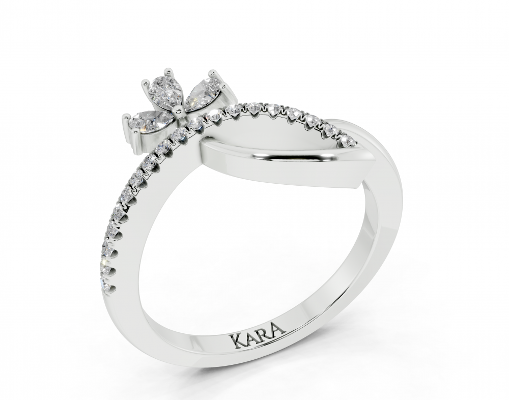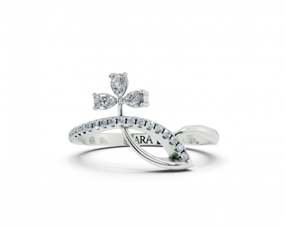 14K white gold ring with 0.16 ct Pear Cut diamonds and 0.10 ct round diamonds. Ring weight is approximately 2.5 grams. The ring can also be made to order in 18K gold. We can modify the design according to your budget.