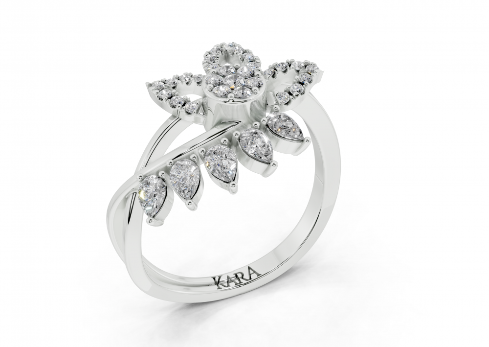 14K white gold ring with 0.28ct Pear Cut diamonds and 0.14ct round diamonds. Ring weight is approximately 3.00 grams. The ring can also be made to order in 18K gold. We can modify the design according to your budget.