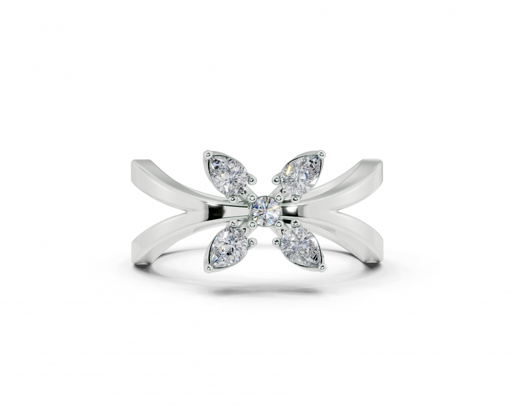 14K white gold ring with 0.33 ct Pear Cut diamonds and 0.03 ct round diamonds. The weight of the ring is approximately 4.00 grams.