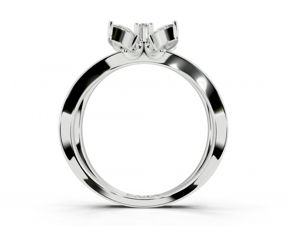 14K white gold ring with 0.33 ct Pear Cut diamonds and 0.03 ct round diamonds. The weight of the ring is approximately 4.00 grams. The ring can also be made to order in 18K gold. We can modify the design according to your budget.