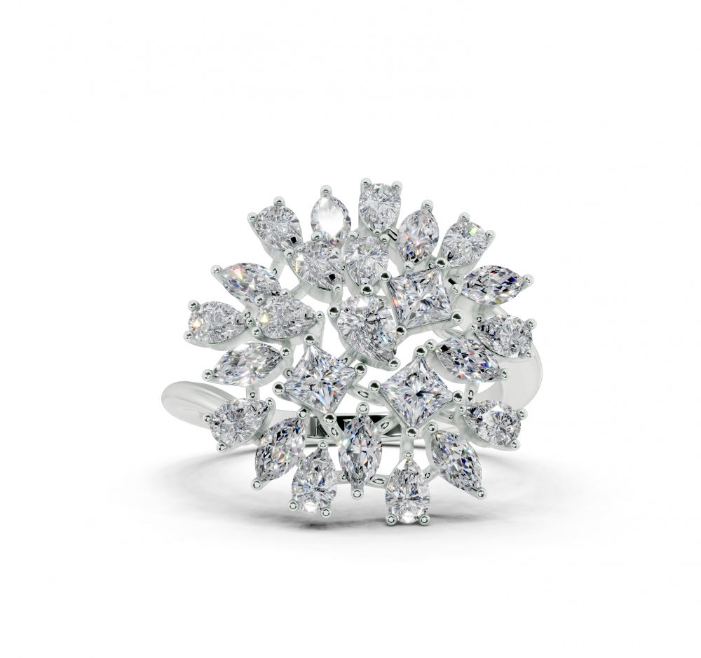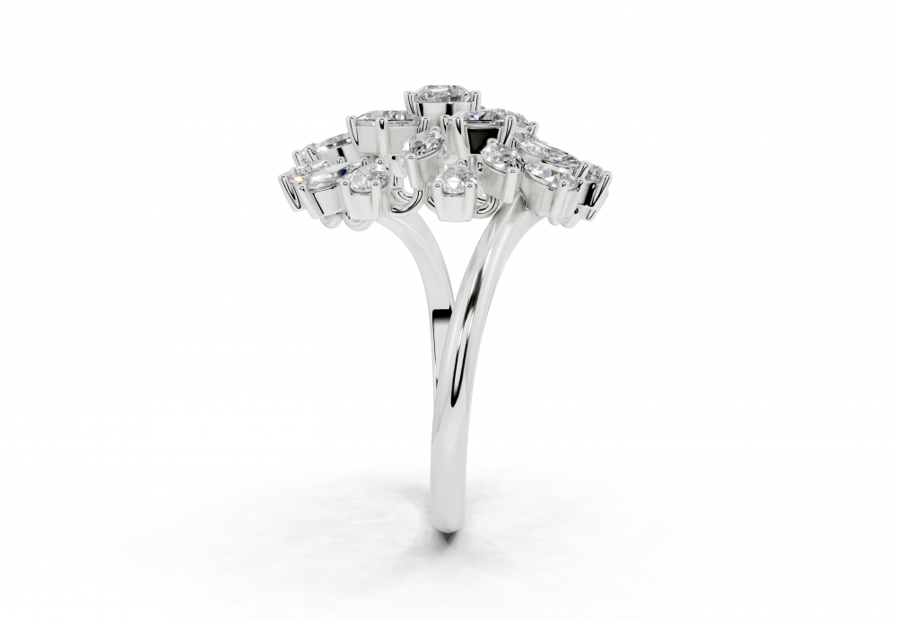 14K white gold ring with 0.35ct Princess Cut diamonds, 0.70ct Pear Cut diamonds and 0.34ct Marquise Cut diamonds. The weight of the ring is approximately 4 grams. The ring can also be made to order in 18K gold. We can modify the design according to your budget.