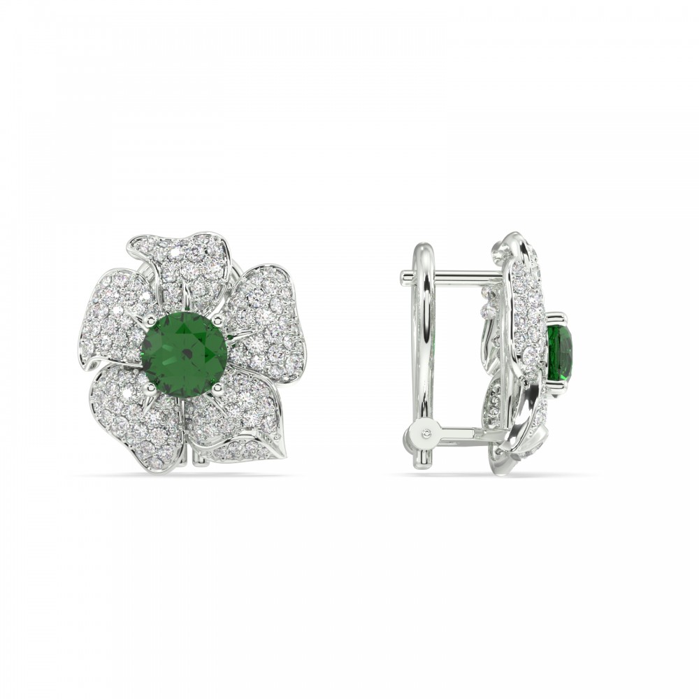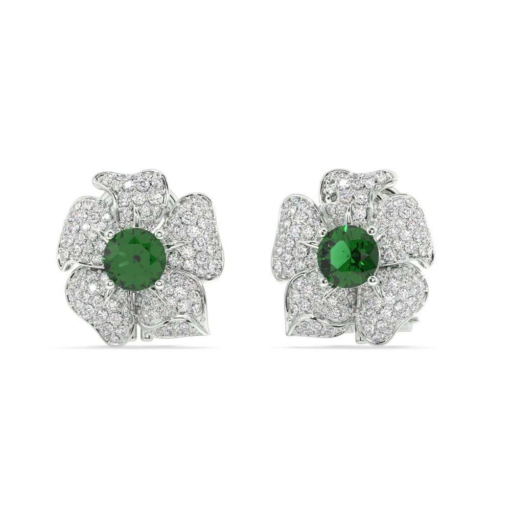 14K white gold earrings with 1.83 ct diamonds and 2.00 ct emeralds. The weight of the earrings is 7.47 grams.