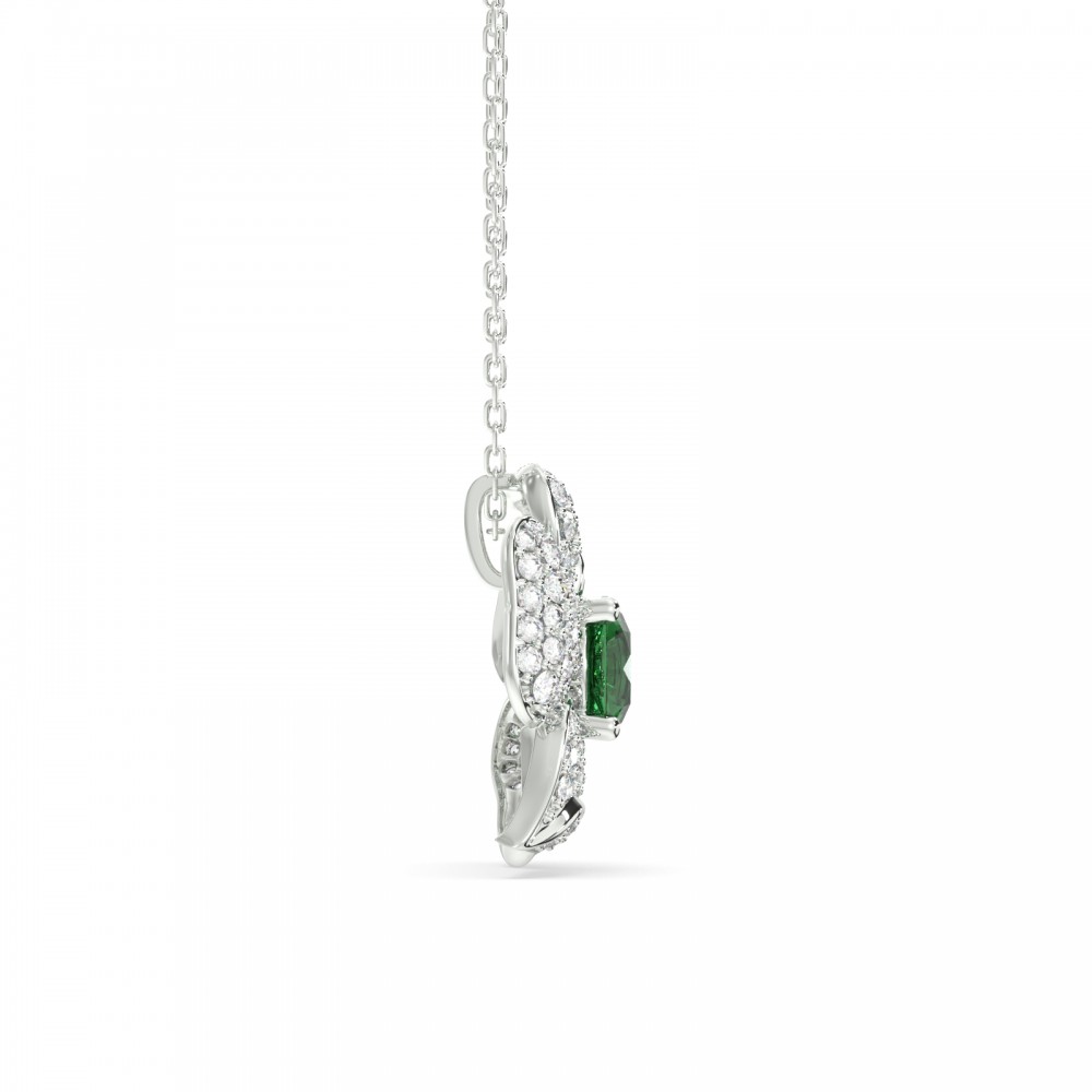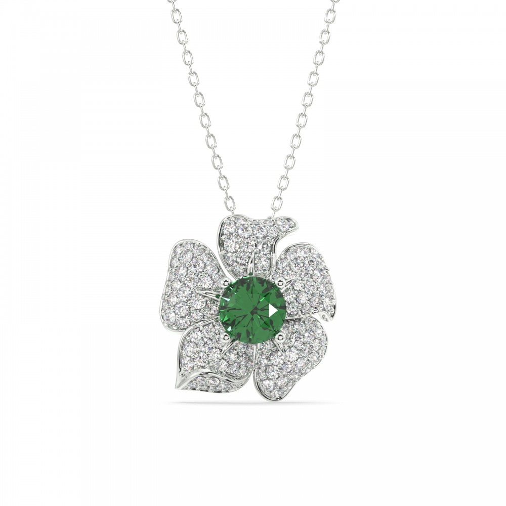 Royal Flower pendant in 14K white gold with 0.75 ct Diamonds and 1.00 ct Emerald. The pendant weighs approximately 5.6 grams.
