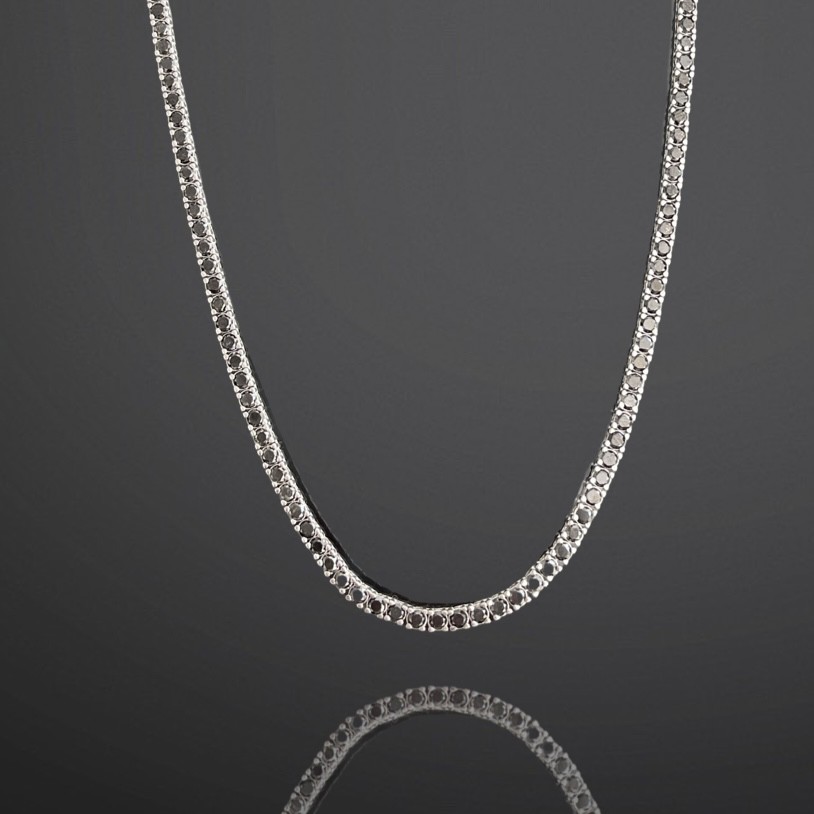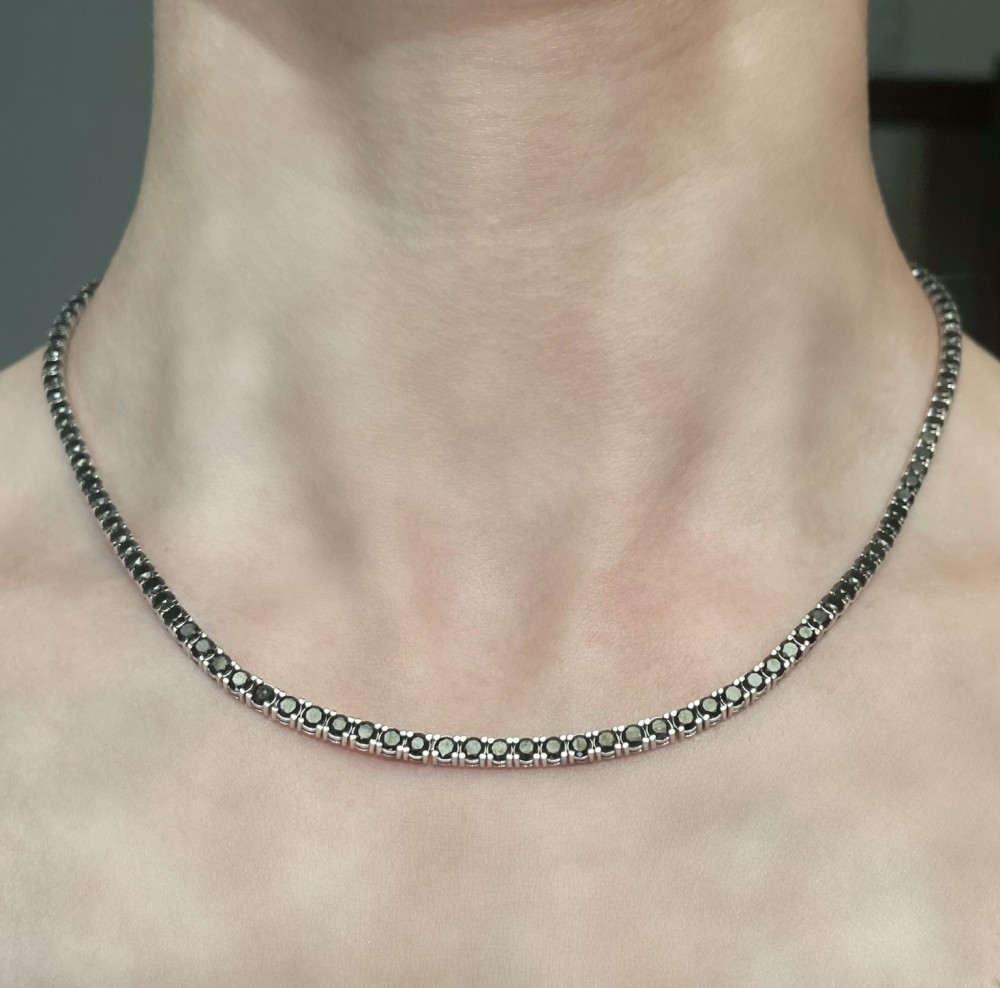 Tennis necklace in 14K white gold with 13.13 ct black diamonds. The weight of the necklace is 22.65 grams.