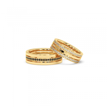 14K gold wedding rings with 0.63ct White Diamonds and 0.43ct Black Diamonds. Approximate weight is 13.00gr/set. The width is 6mm. Wedding rings can be made to order in 18k gold. We can modify the design according to your budget. We can choose the diamond characteristics (cut, color, clarity,...