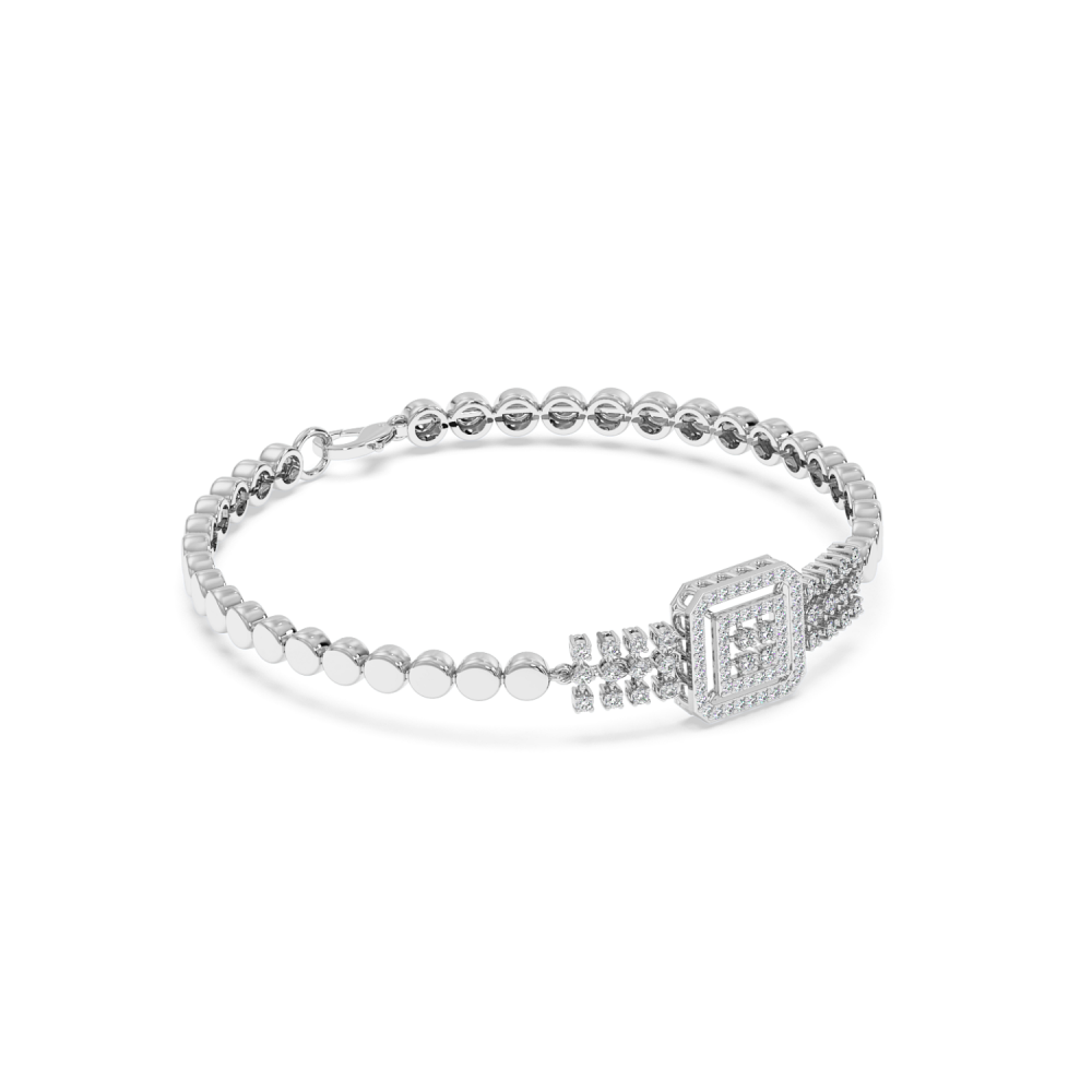 Bratara din aur alb de 14 K, cu diamante de 0.48ct. Greutatea bratarii este de aproximativ 12.50 grame.