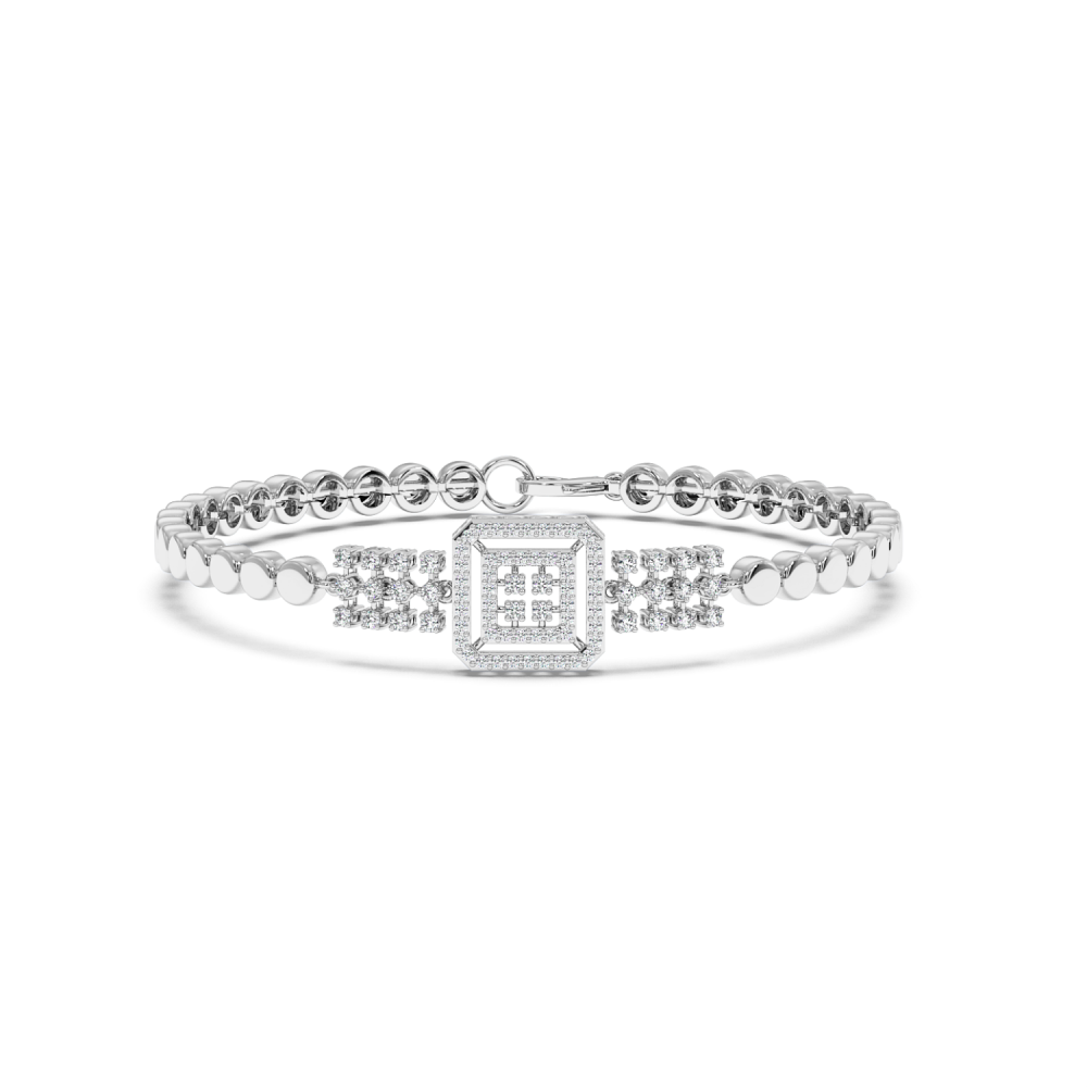 Bratara din aur alb de 14 K, cu diamante de 0.48ct. Greutatea bratarii este de aproximativ 12.50 grame. Accesati "SPECIFICATII" pentru mai multe detalii despre acest produs.