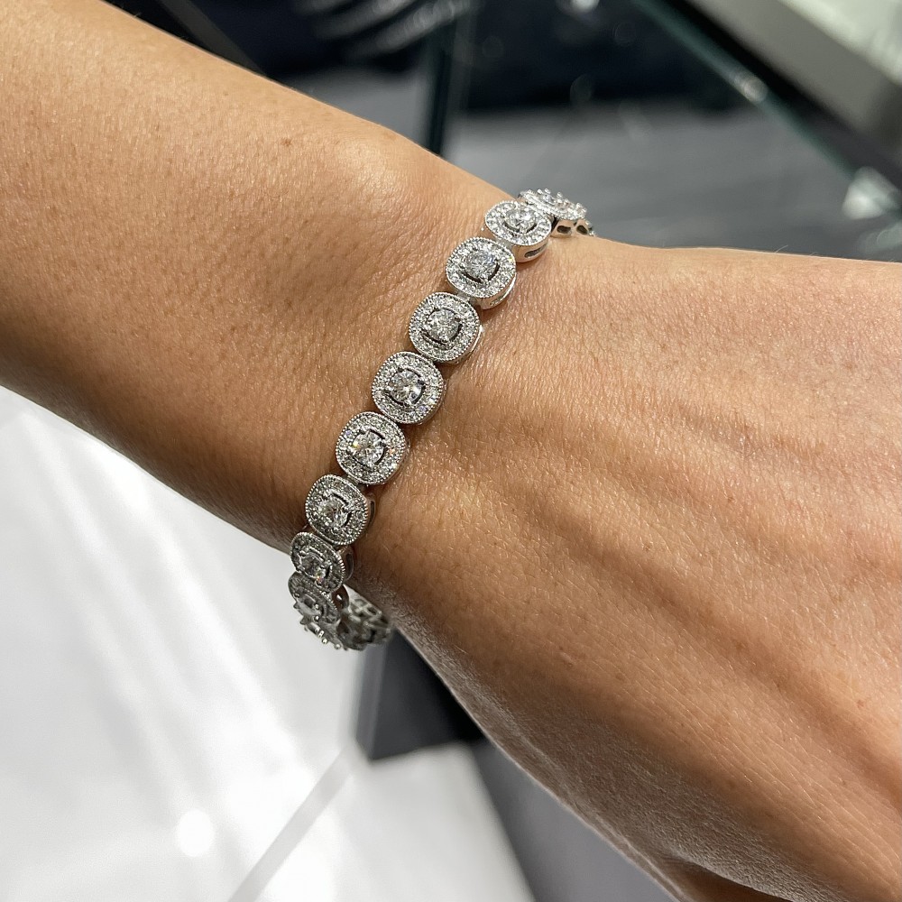 Bratara din aur alb de 14 K, cu diamante de 5.86 ct. Greutatea bratarii este de 20.30 grame.