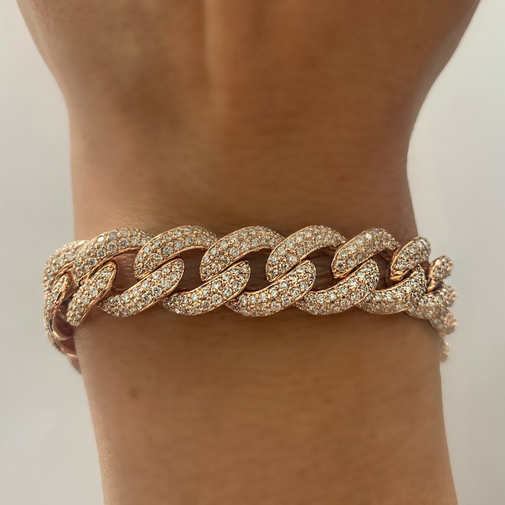 Bratara din aur rose de 18K, cu diamante de 6.36 ct. Greutatea bratarii este de aproximativ 38.96 grame.