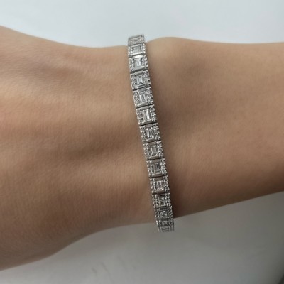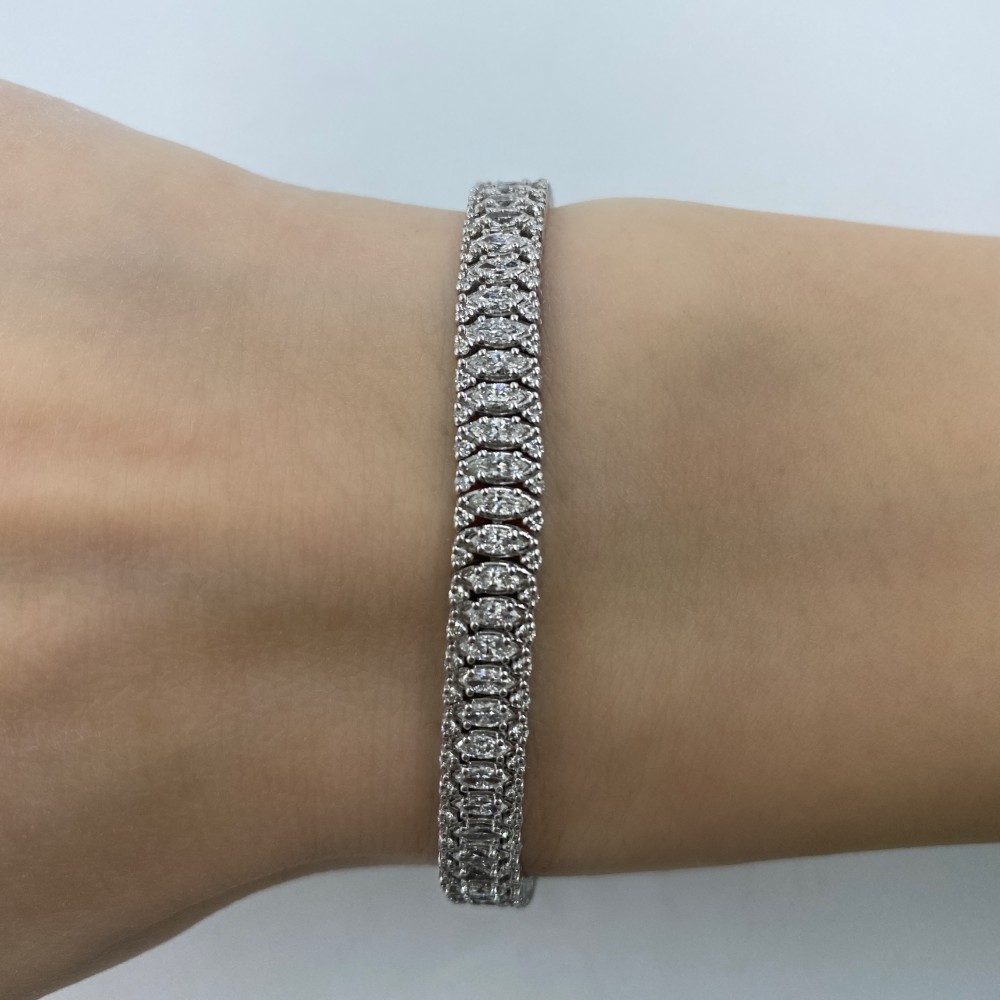 Bratara din aur alb de 14 K, cu diamante marquise de 3.49 ct si diamante round de 0.98 Greutatea bratarii este de 17.75 grame. Accesati " SPECIFICATII " pentru mai multe detalii despre acest produs. Pentru o evaluare corecta a diamantului, consultati graficul...
