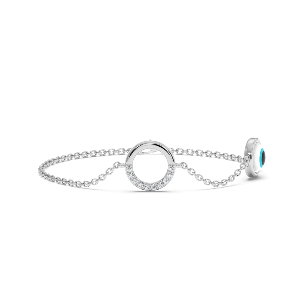 Bratara din aur alb de 14 k, cu diamante de 0.05 ct. Greutatea bratarii este de aproximativ 1.9 grame. Lungimea bratarii este de 13 cm