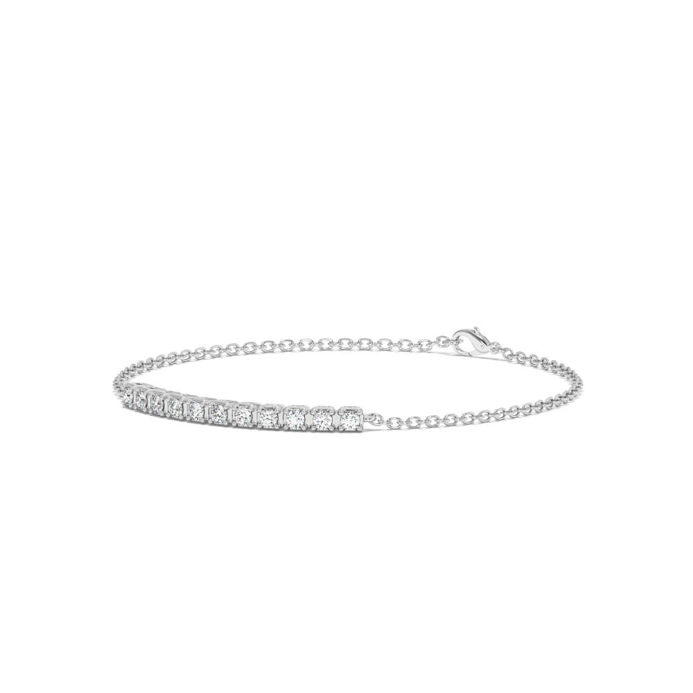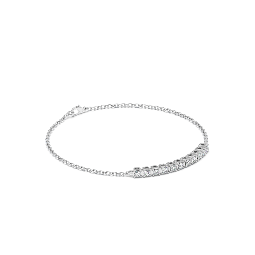 Bratara din aur alb de 14 k, cu diamante de 0.28 ct. Greutatea bratarii este de aproximativ 2.5 grame. Lungimea bratarii este de 13 cm