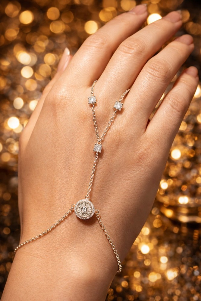 Bratara din aur alb de 14 K cu diamante albe round de 0.41 ct si diamante bagheta 0.10 ct. Greutatea bratarii este de 4.18 grame.