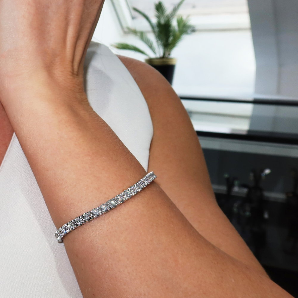 Bratara Tennis din aur alb de 14K, cu diamante de 3.05 ct. Greutatea bratarii este de 13.66 grame.