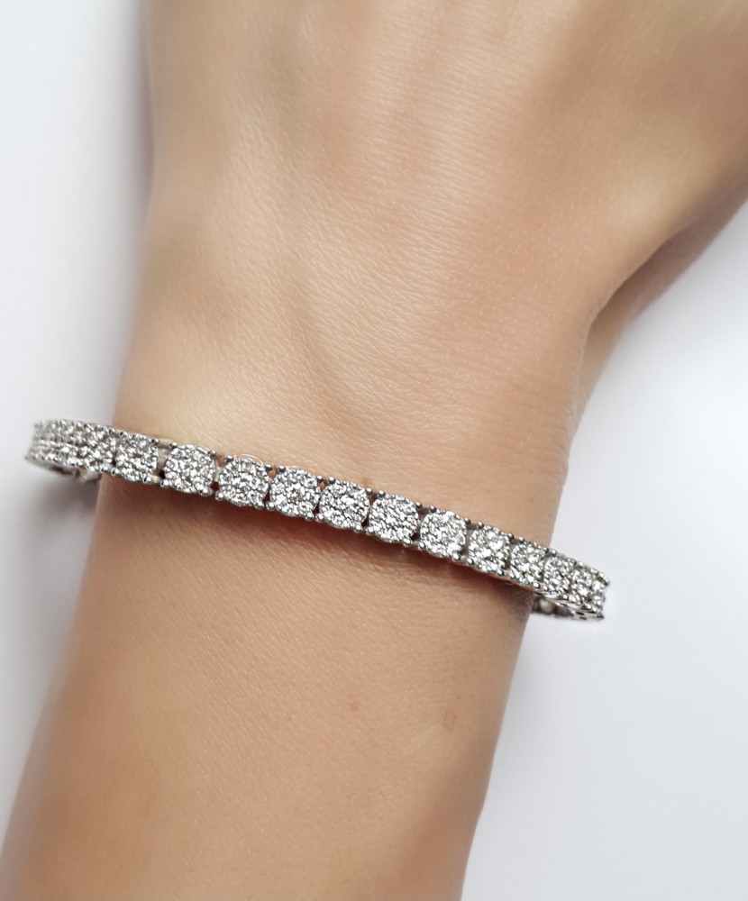 Bratara din aur alb de 14K, cu diamante de 3.11 ct. Greutatea bratarii este de 16.83 grame.