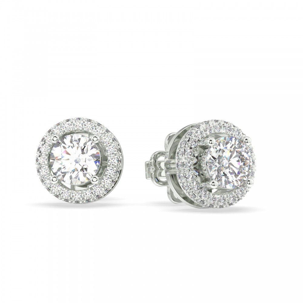 Cercei 3 piese din aur alb de 14 K, cu Diamante central de 0.69 ct fiecare si diamante laterale de 0.44. Greutatea cerceilor este de apx 4.15 grame. Cerceii pot fi confectionati din aur alb, galben sau rose.