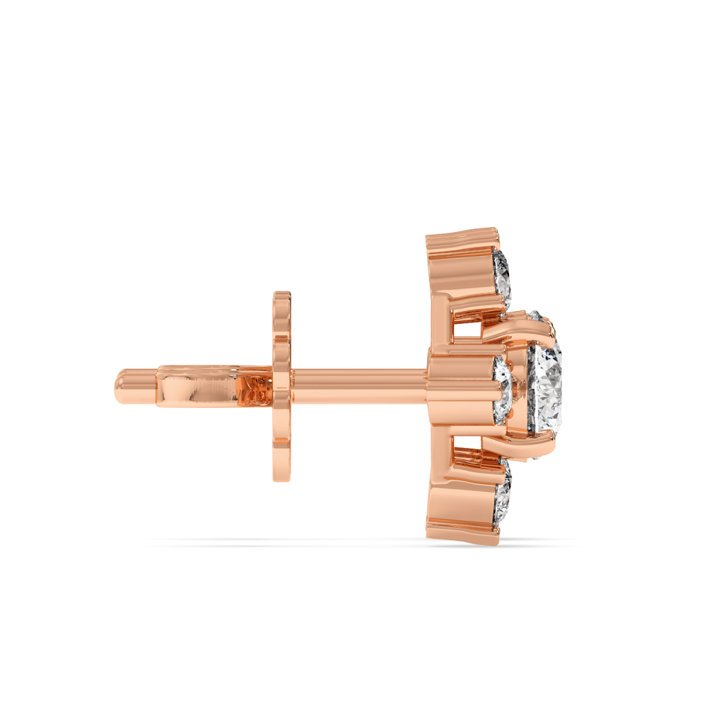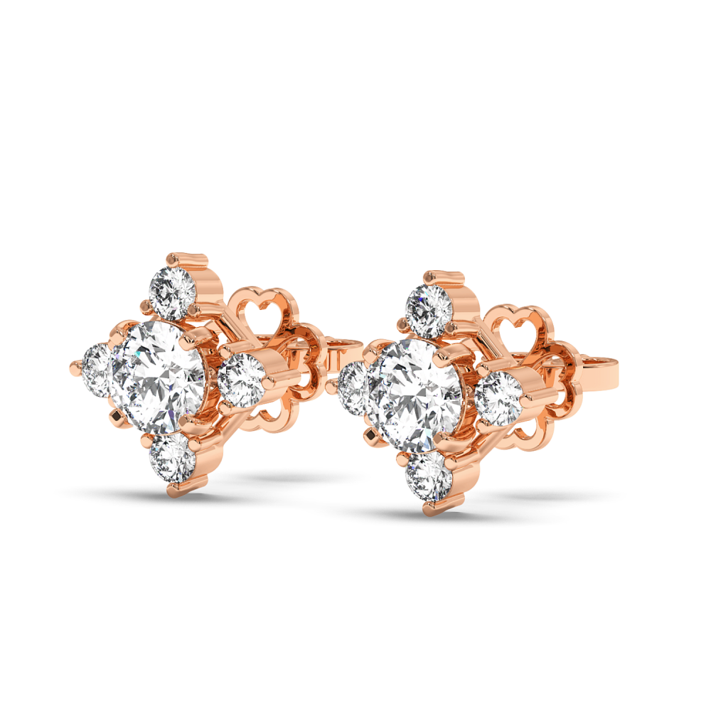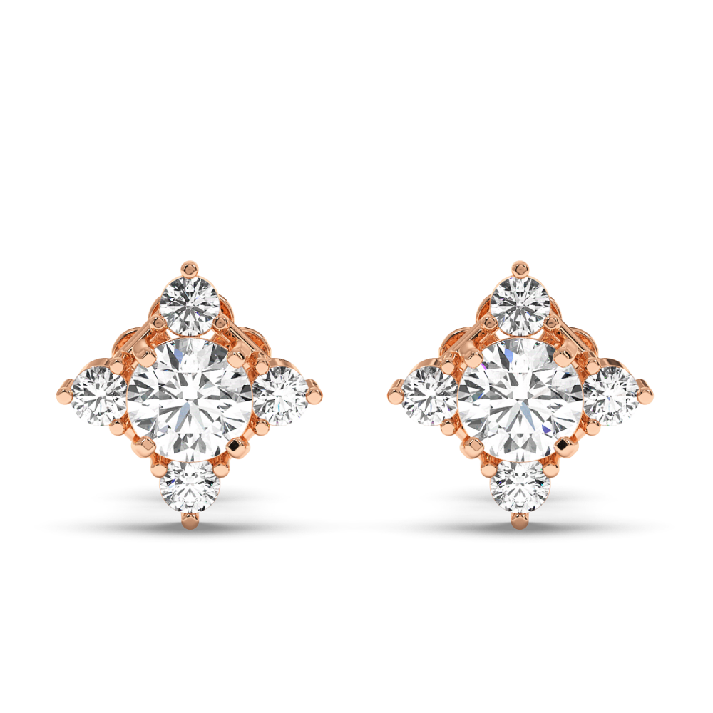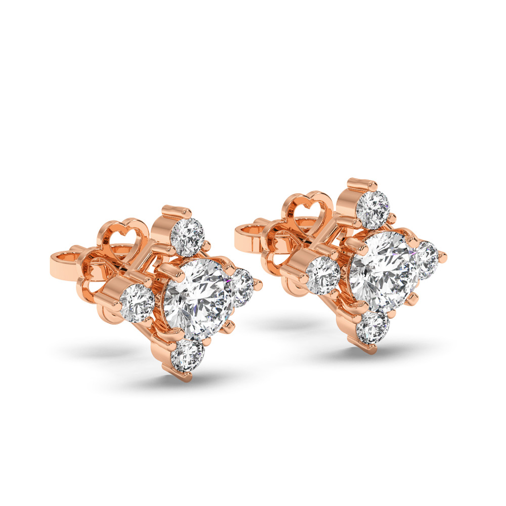 Cercei din aur alb de 14 K, cu diamant central fiecare de 0.25 ct. si diamante laterale de 0.21 ct. Greutatea aproximativa a cerceilor este de 2.37 grame. Lungimea cerceilor este de 9 mm.