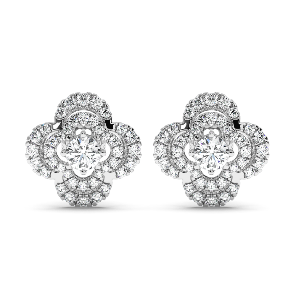 Cercei cu diamant central fiecare de 0.27 ct si diamante laterale de 0.33 ct