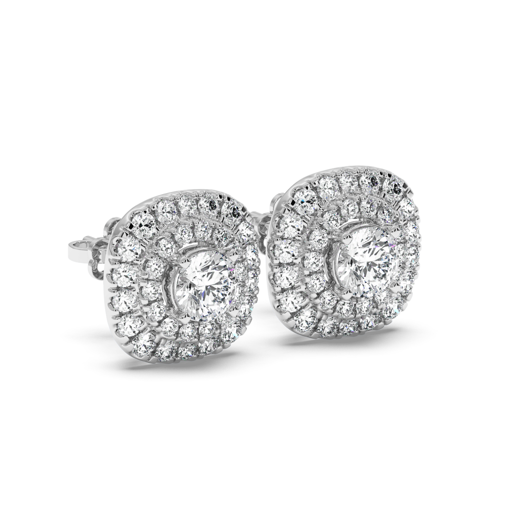Cercei din aur alb de 14 K, cu diamant central fiecare de 0.41 ct. si diamante laterale de 1.11 ct. Greutatea aproximativa a cerceilor este de 4.80 grame.