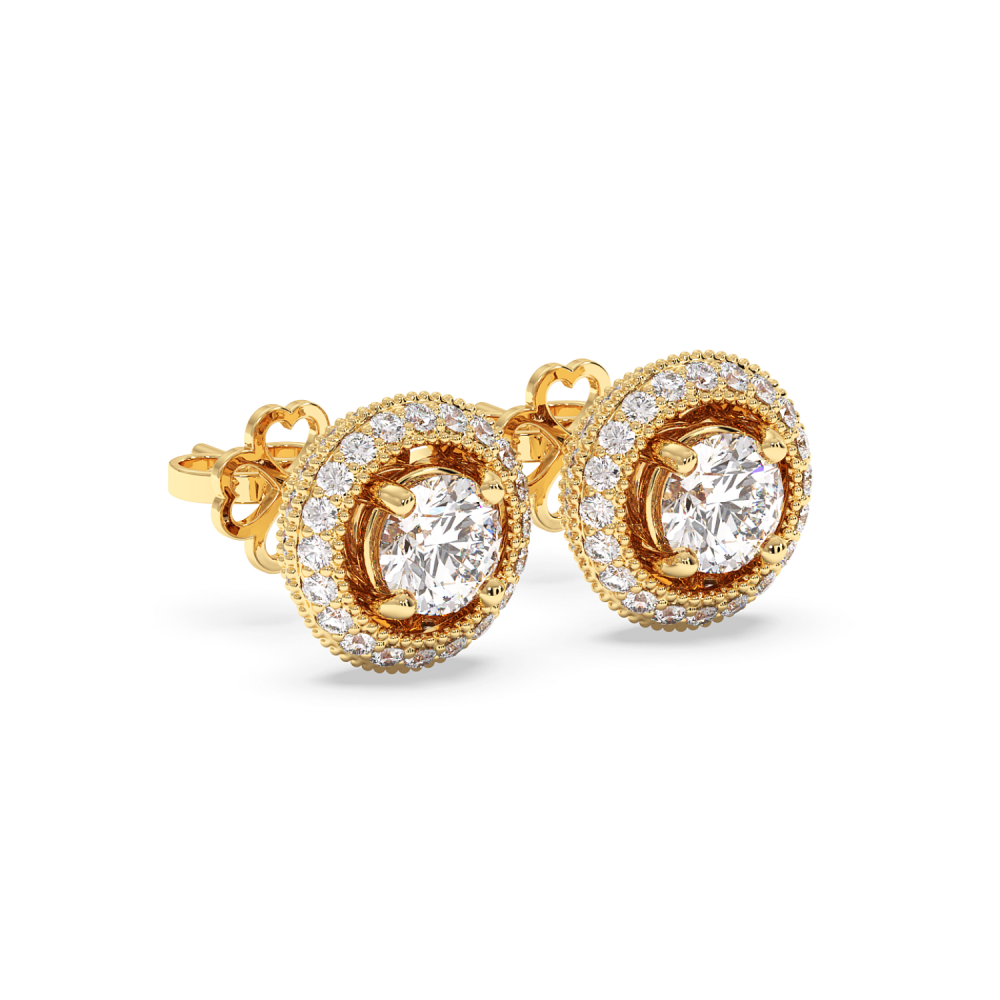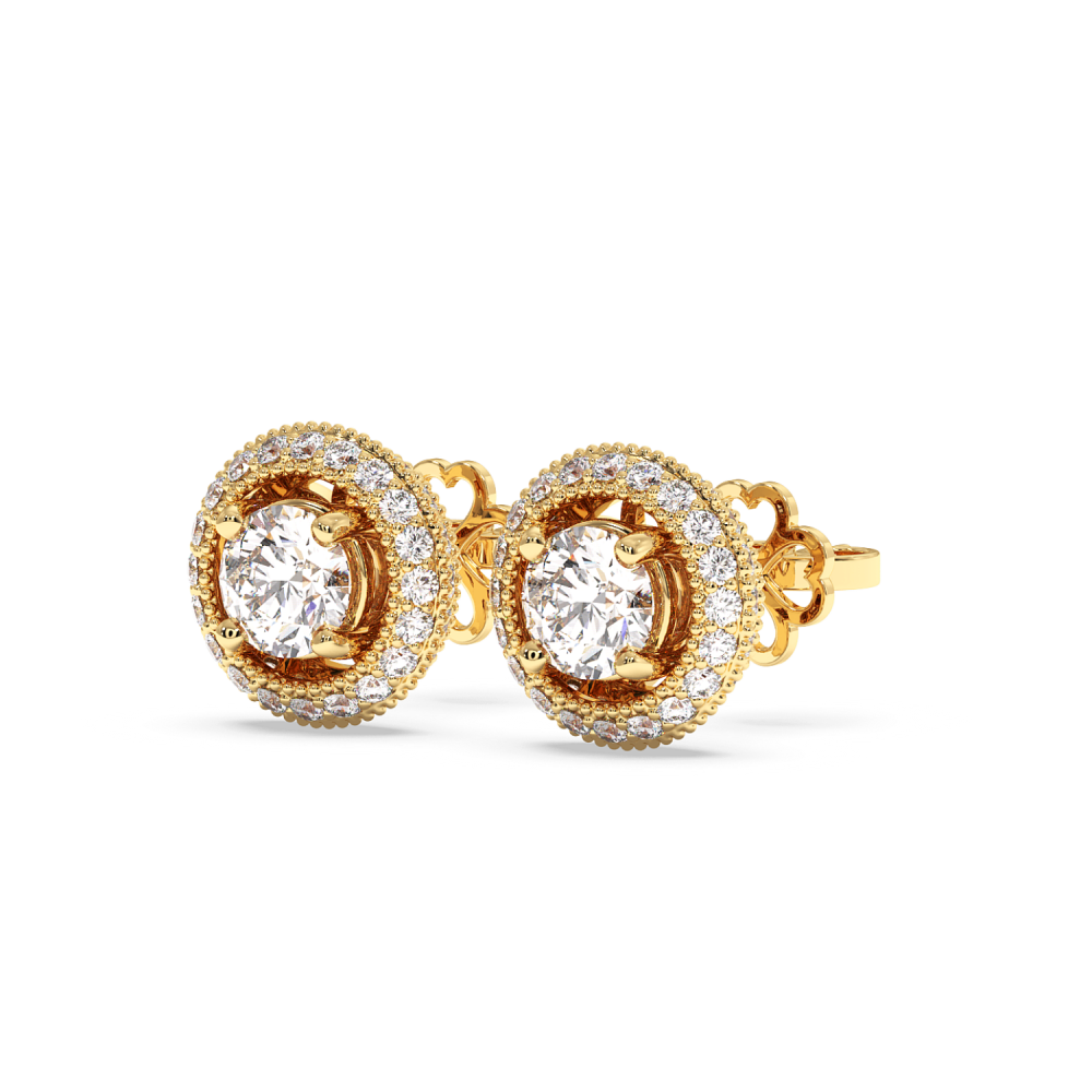 Cercei din aur alb de 14 K, cu diamant central fiecare de 0.50 ct. si diamante laterale de 0.67 ct. Greutatea aproximativa a cerceilor este de 3.33 grame.