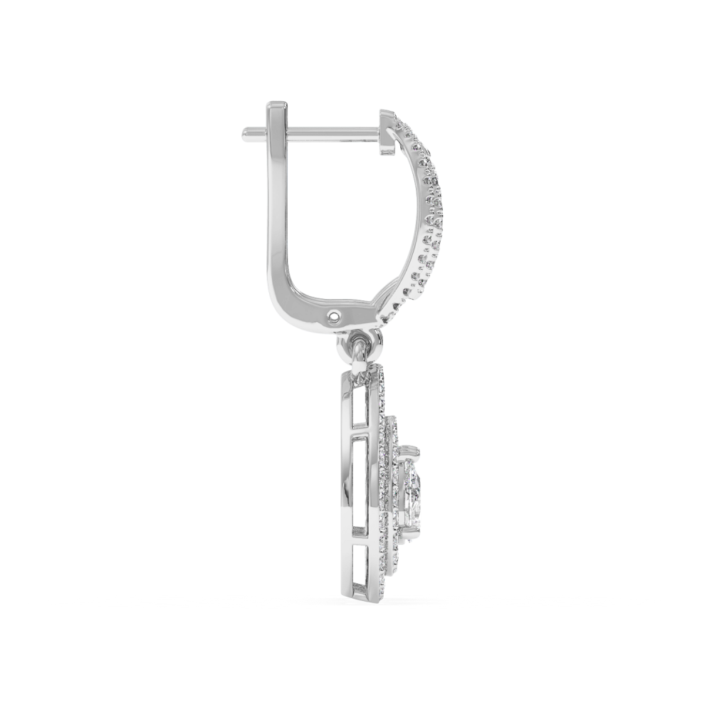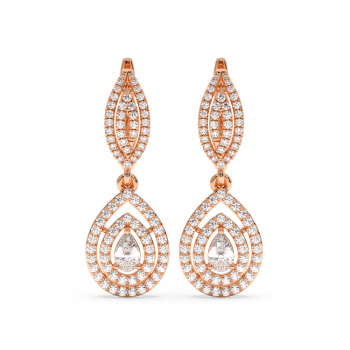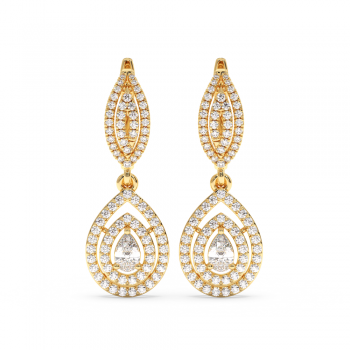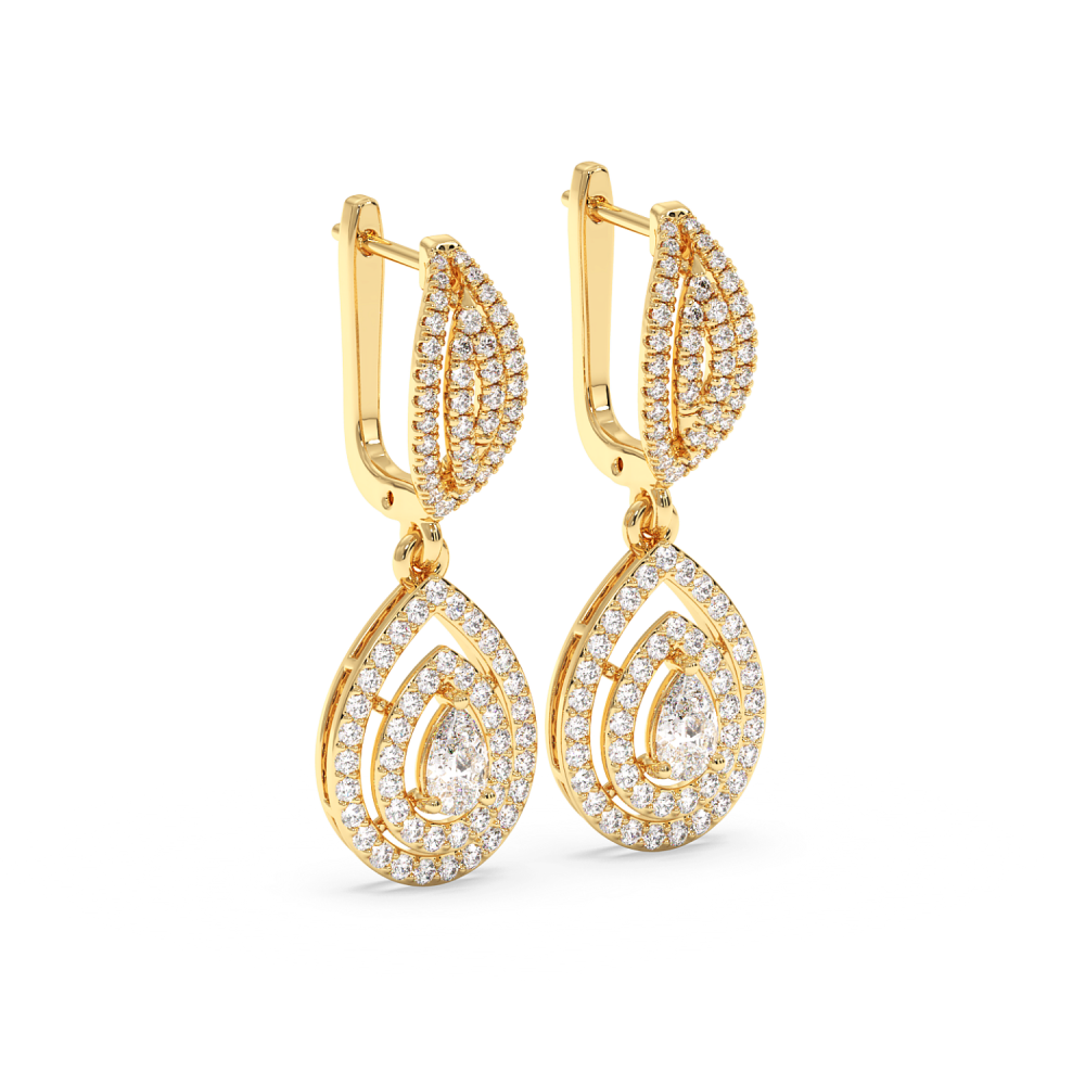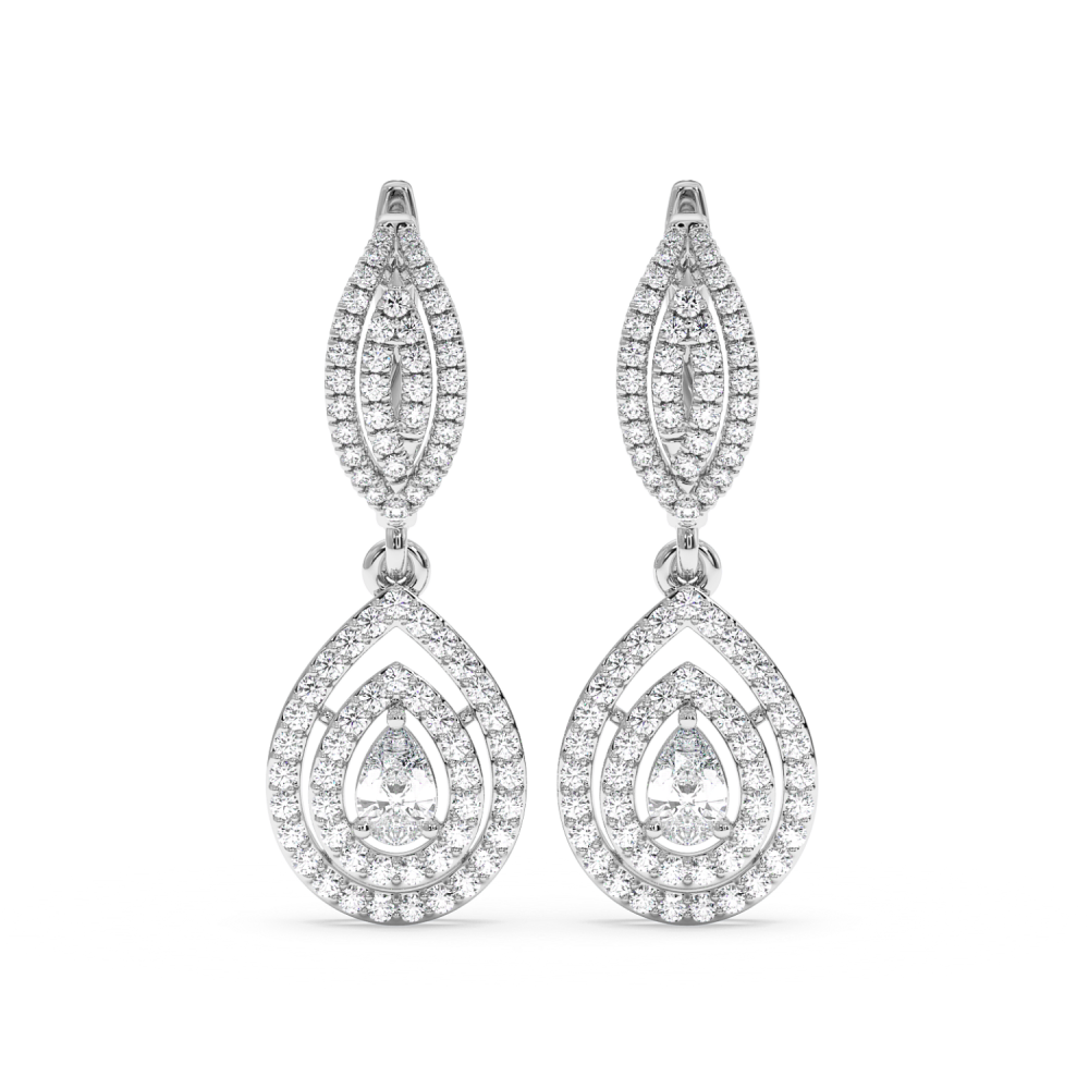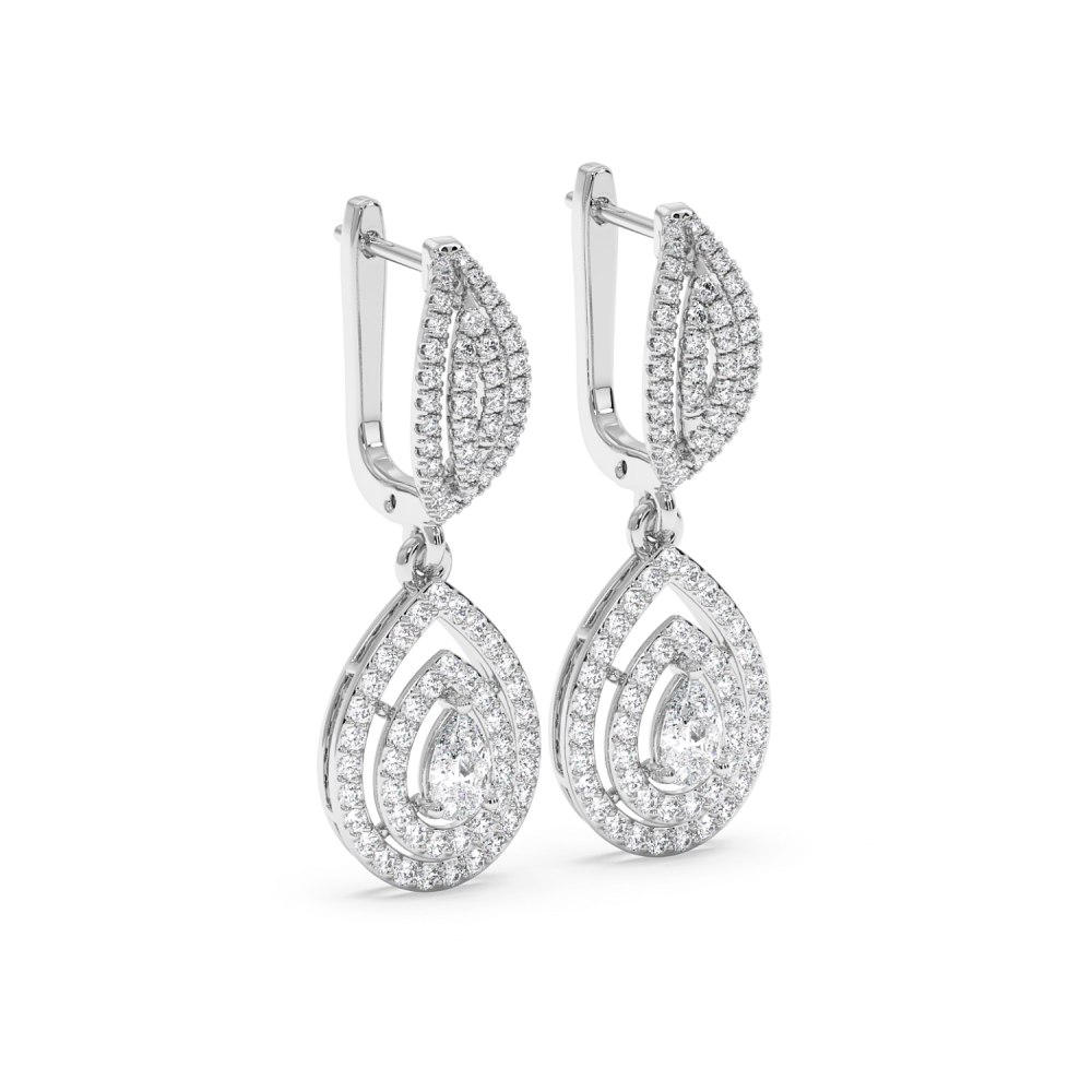 Cercei cu Diamant Central Pear Cut de 0.25ct fiecare si Diamante Laterale de 1.12ct
