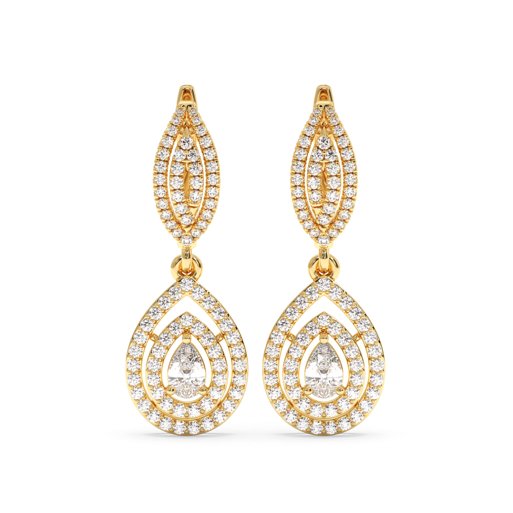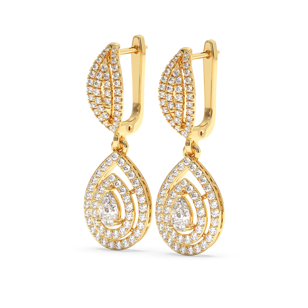 Cercei cu Diamant Central Pear Cut de 0.25ct fiecare si Diamante Laterale de 1.12ct