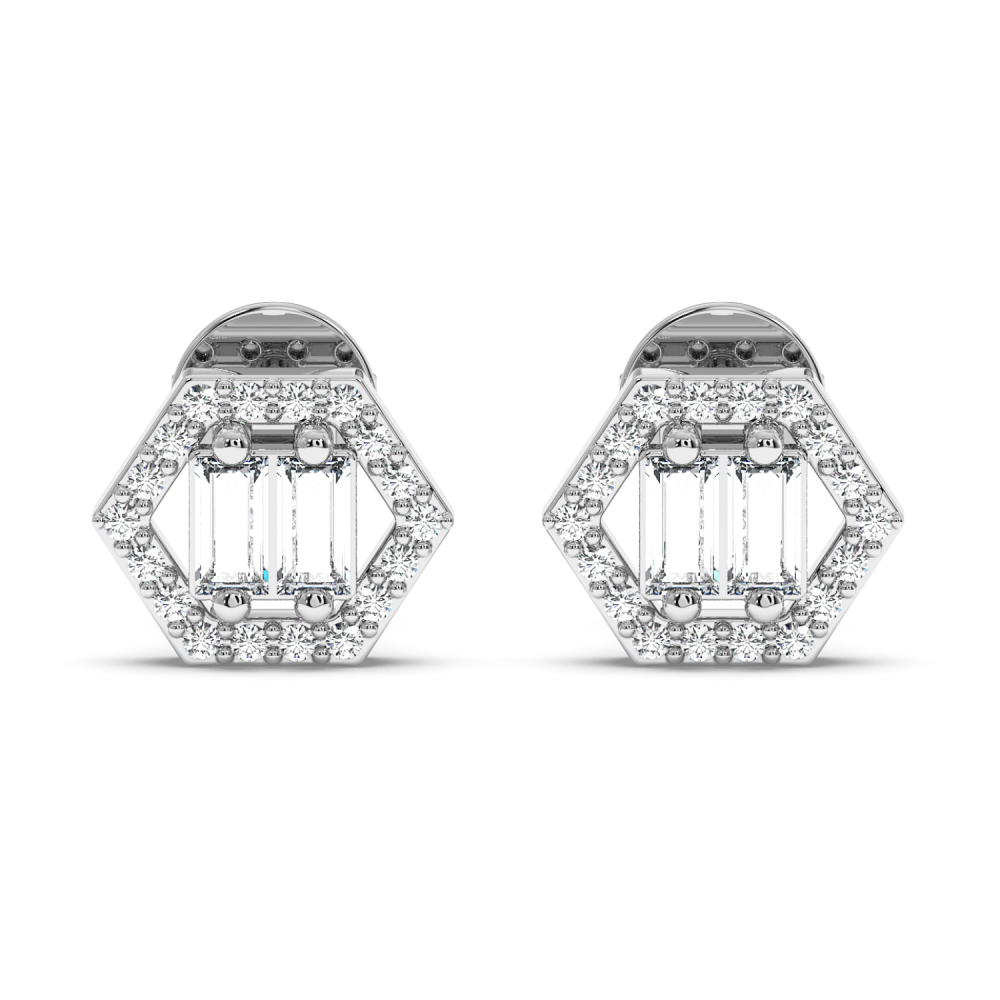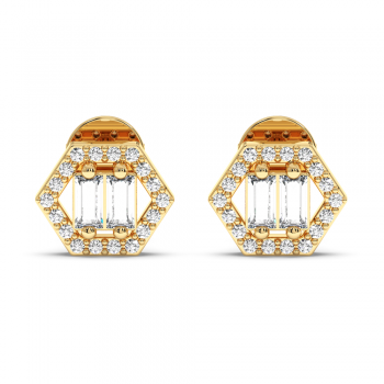 Cercei din aur de 14 K, cu diamante baget de 0.14ct si diamante rotunde de 0.13ct. Greutatea cerceilor este de aproximativ 2 grame. Accesati "SPECIFICATII" pentru mai multe detalii despre acest produs.