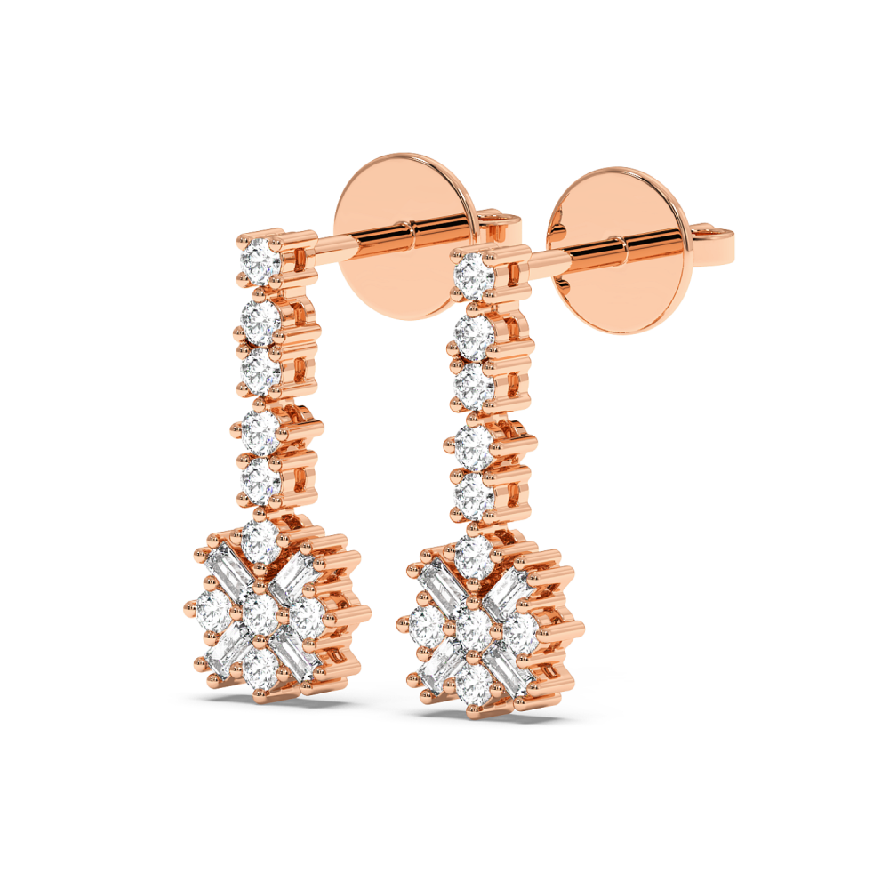 Cercei cu diamante baget de 0.08 si diamante rotunde de 0.15ct