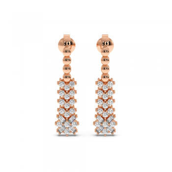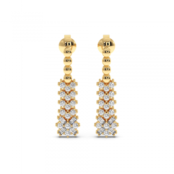 Cercei din aur de 14 K, cu diamante baget de 0.08ct si diamante rotunde de 0.25ct. Greutatea cerceilor este de aproximativ 2.4 grame. Accesati "SPECIFICATII" pentru mai multe detalii despre acest produs.