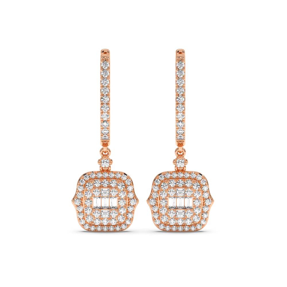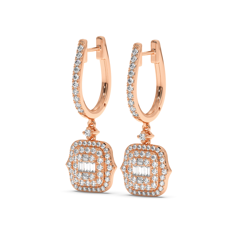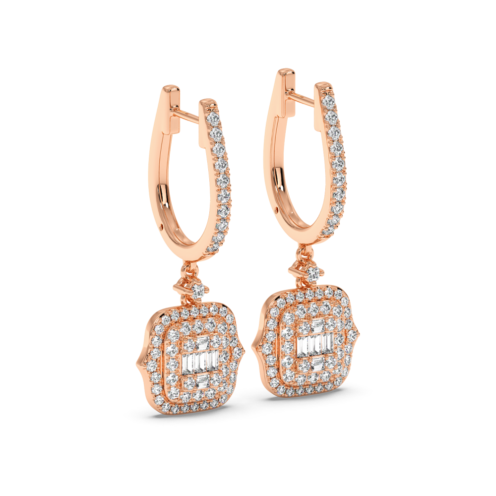 Cercei cu Diamante Baget de 0.08ct si Diamante Rotunde de 0.86ct