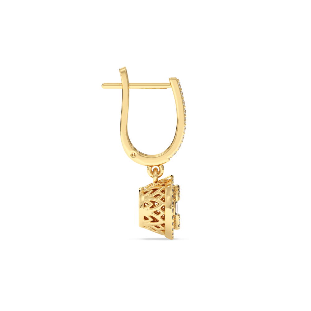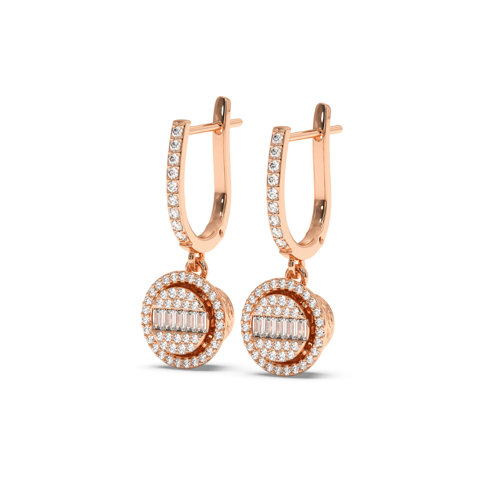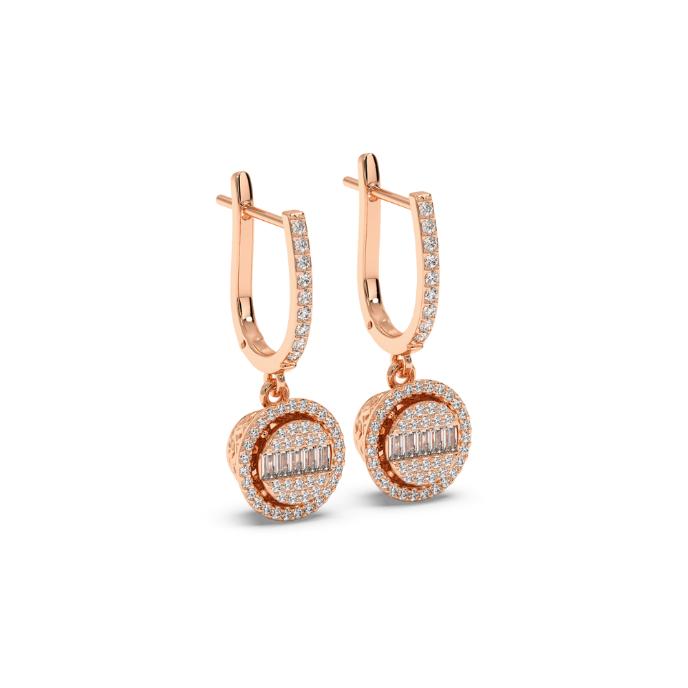 Cercei din aur alb de 14 K, cu diamante bagheta de 0.17 ct. si diamante round de 0.27 ct Greutatea cerceilor este de apx 4.71 grame. La comanda se pot realiza si din aur galben sau rose