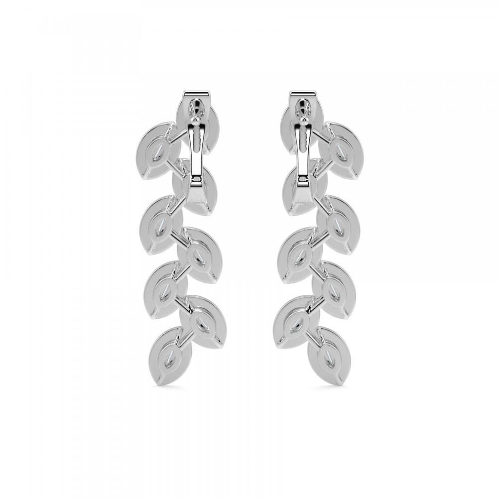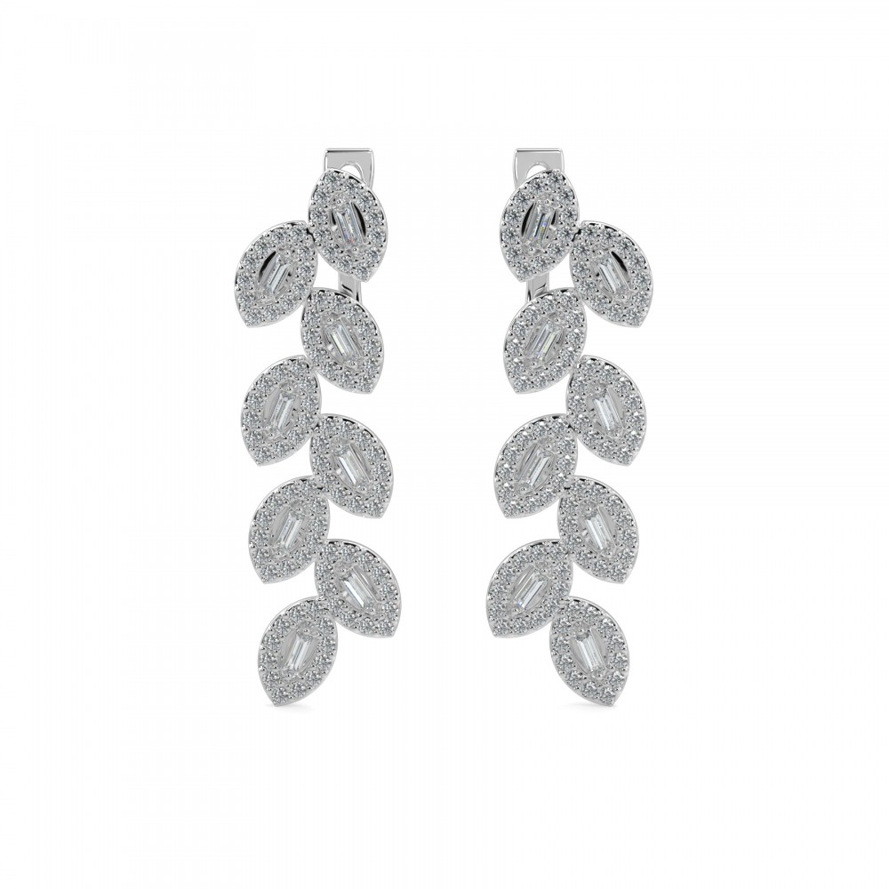 Cercei cu diamante din aur alb de 14 K cu diamante baget de 0.27 ct si diamante de 0.48 ct. Greutatea cerceilor este de aproximativ 5.98 grame.