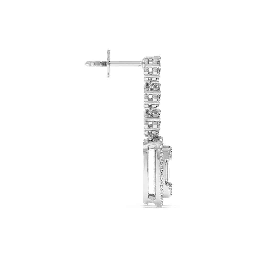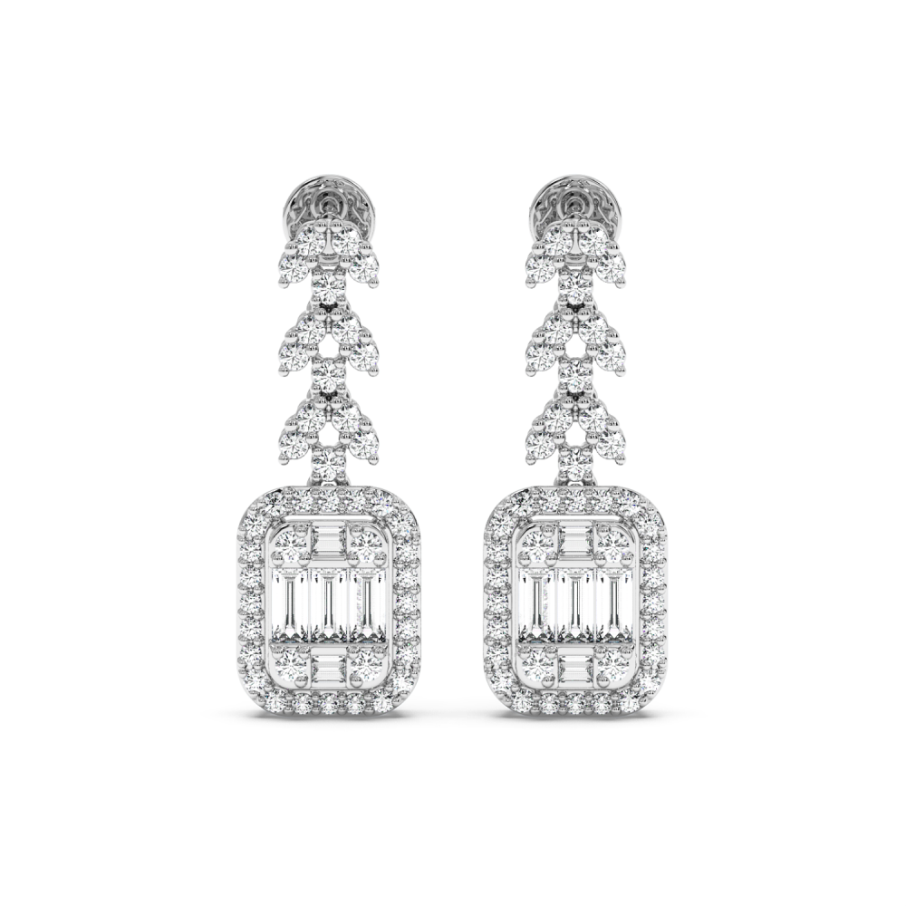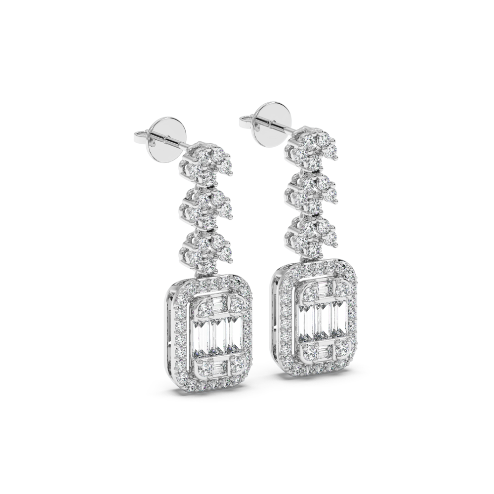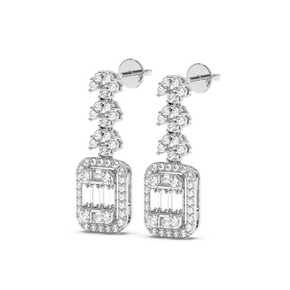 Cercei din aur alb de 14K cu diamante de baget de 0.27 ct si diamante round de 0.53 ct. Greutatea cerceilor este de aproximativ 3.80 grame.