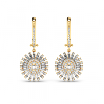 Cercei din aur de 14 K, cu diamante baget de 1.3ct si diamante rotunde de 0.99ct. Greutatea cerceilor este de aproximativ 9.20 grame. Accesati "SPECIFICATII" pentru mai multe detalii despre acest produs.