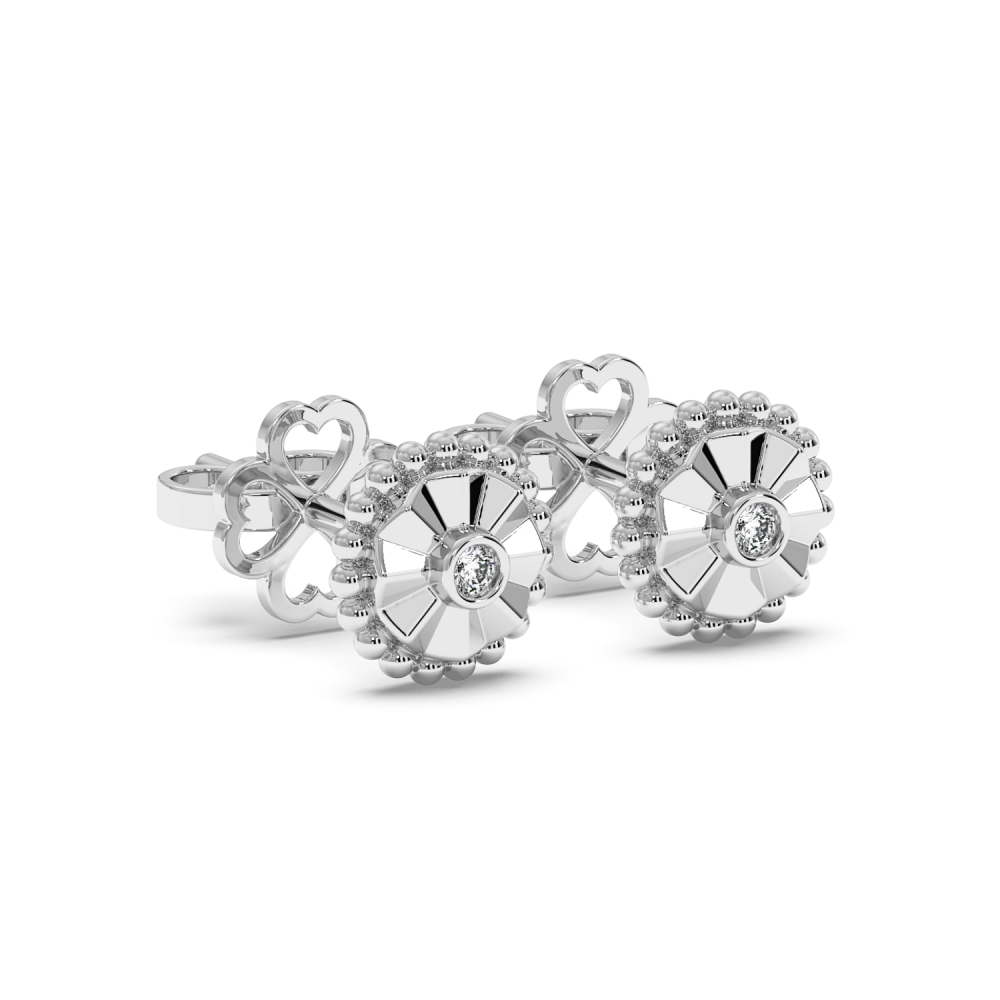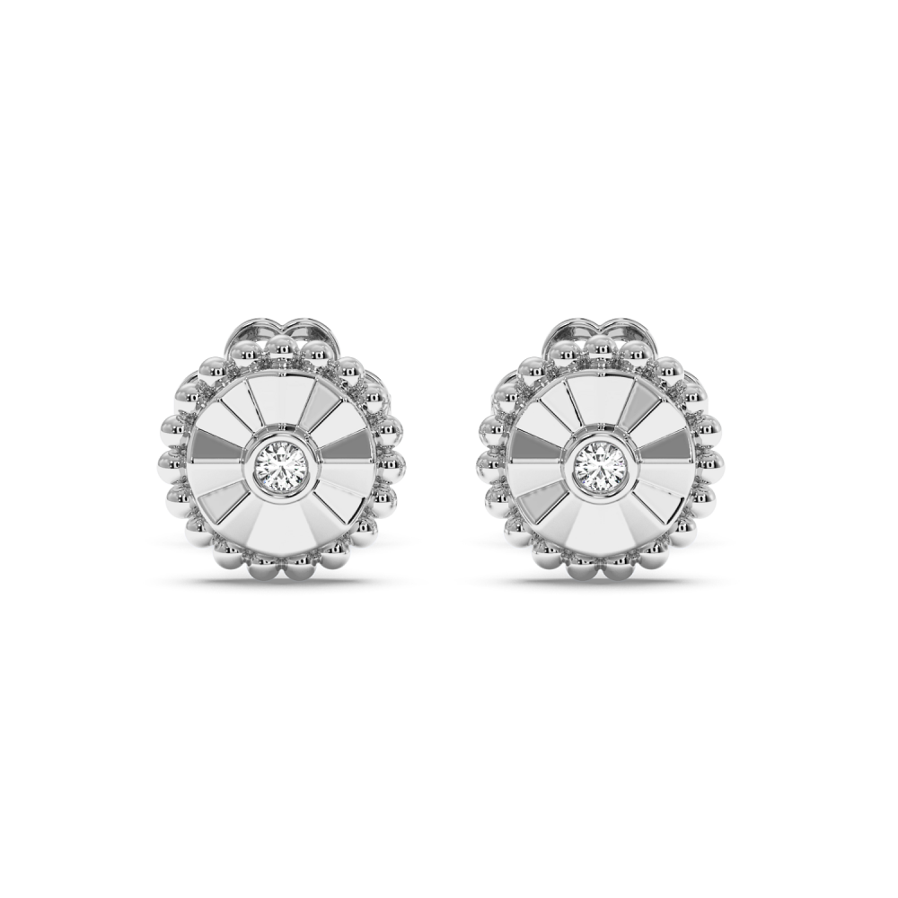 Cercei din aur alb de 14 K, cu diamante de 0.02 ct. Greutatea cerceilor este de 1.8 grame. Diametrul cerceilor este de 6 mm. Cerceii se pot face pe comanda si din aur de 18K, galben sau rose. Putem modifica design-ul in functie de bugetul dumneavoastra