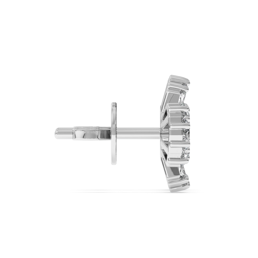 Cercei din aur alb de 14 K cu diamante de 0.04 ct si dimante Baget de 0.30 ct. Greutatea cerceilor este de apx 2.00 grame.