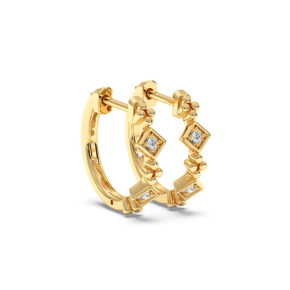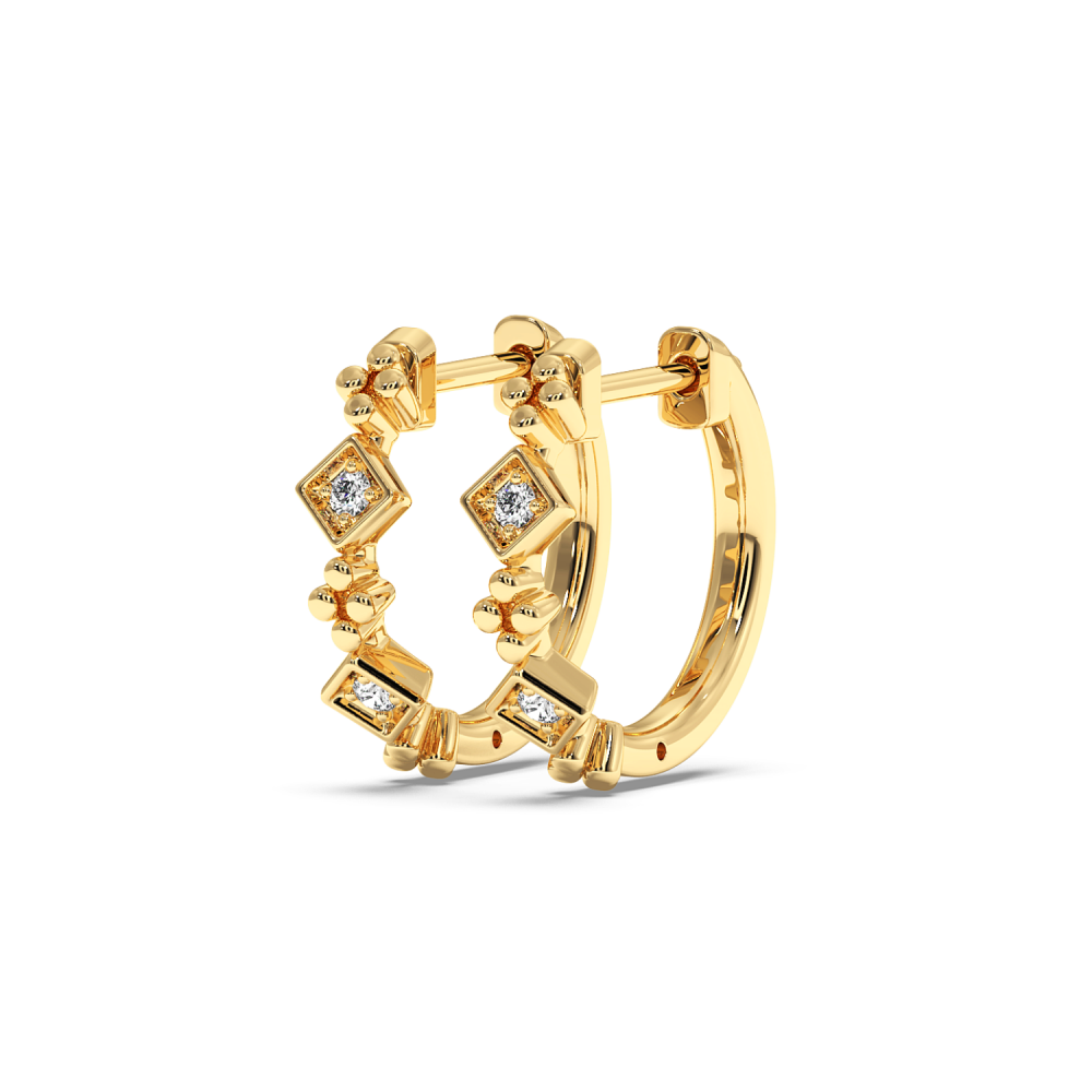 Cercei din aur alb de 14 K, cu diamante de 0.04 ct. Greutatea cerceilor este de 1.7 grame. Diametrul cerceilor este de 1.2 cm. Cerceii se pot face pe comanda si din aur de 18K, galben sau rose. Putem modifica design-ul in functie de bugetul dumneavoastra.