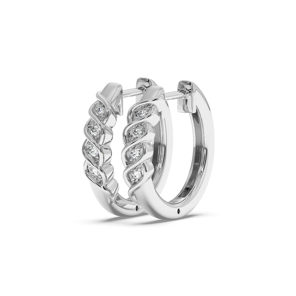 Cercei din aur alb de 14 K, cu diamante de 0.08 ct. Greutatea cerceilor este de 3.99 grame.