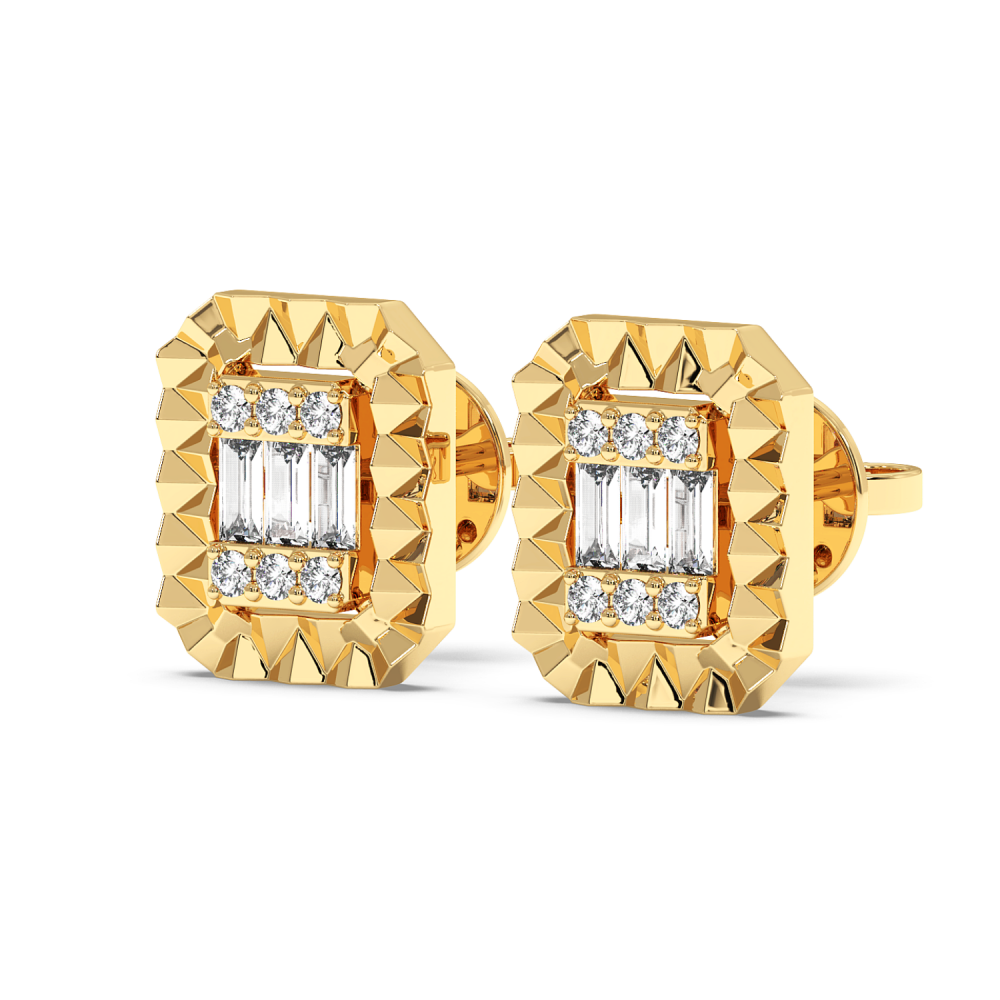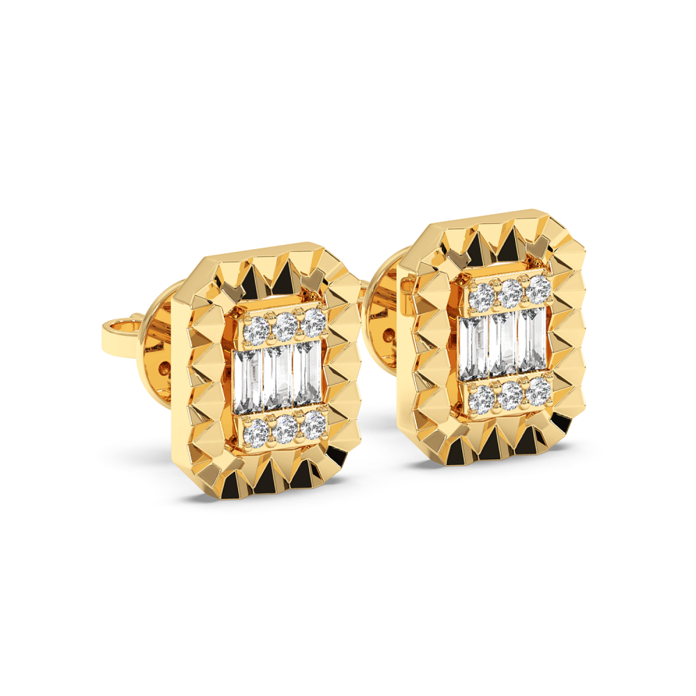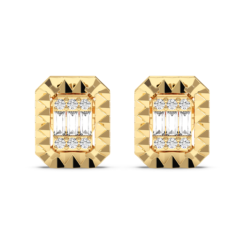 Cercei din aur alb de 14 K cu diamante de 0.11 ct si dimante Baget de 0.19 ct. Greutatea cerceilor este de apx 3.18 grame.