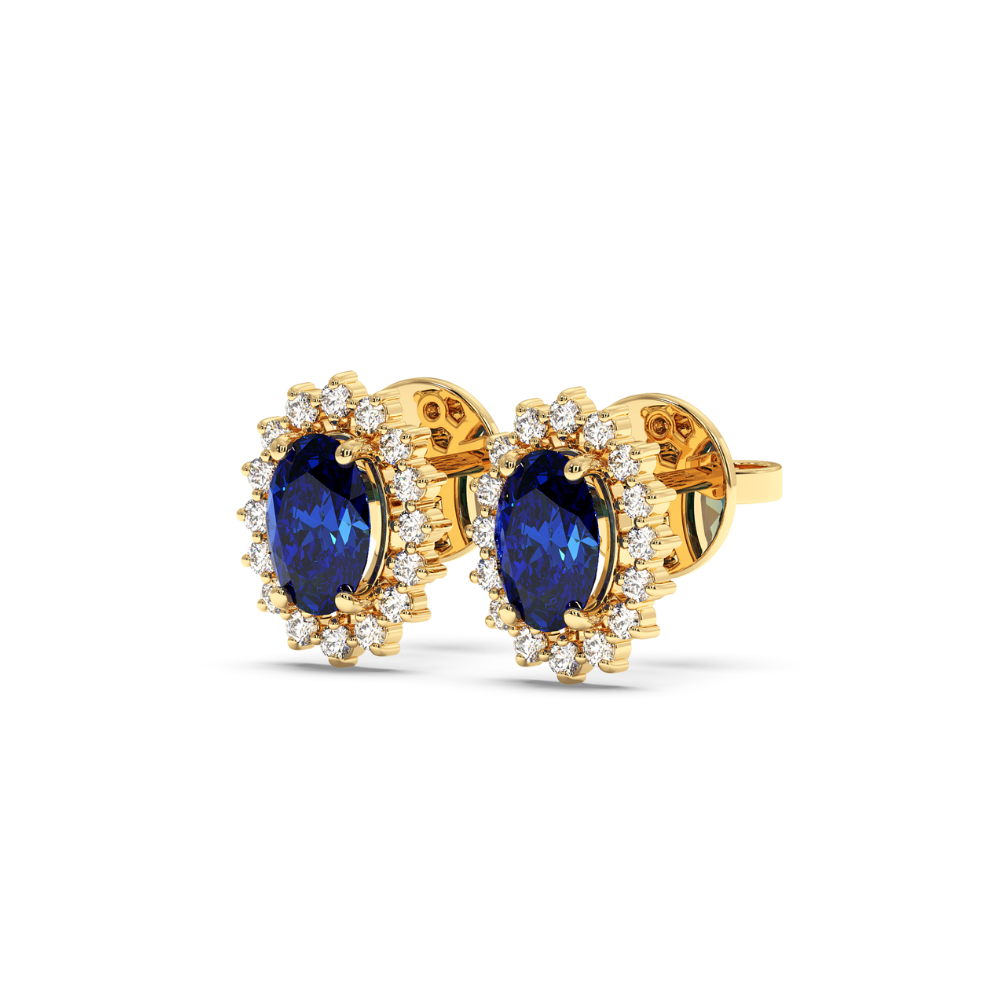 Cercei din aur alb de 14 K cu safir de 0.72 si diamante de 0.16 ct. Greutatea cerceilor este de apx 1.5 grame.