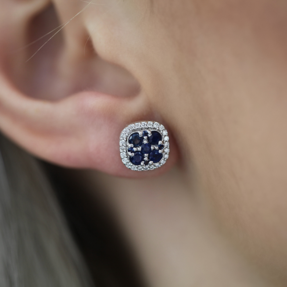Cercei din aur alb de 14 K, cu diamante de 0.25 ct. si safire de 0.95 ct. Greutatea cerceilor este de 3.30 grame.