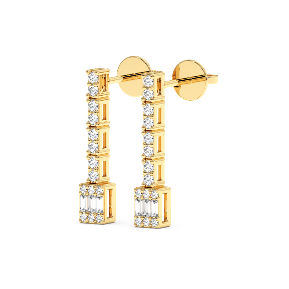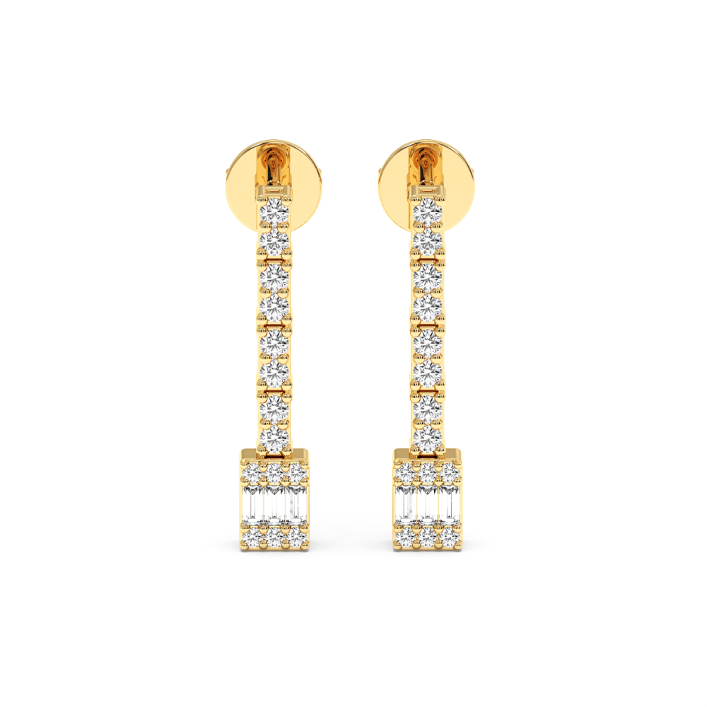 Cercei din aur de 14 K, cu diamante de 0.27ct. Greutatea cerceilor este de aproximativ 2 grame.   Accesati "SPECIFICATII" pentru mai multe detalii despre acest produs.
