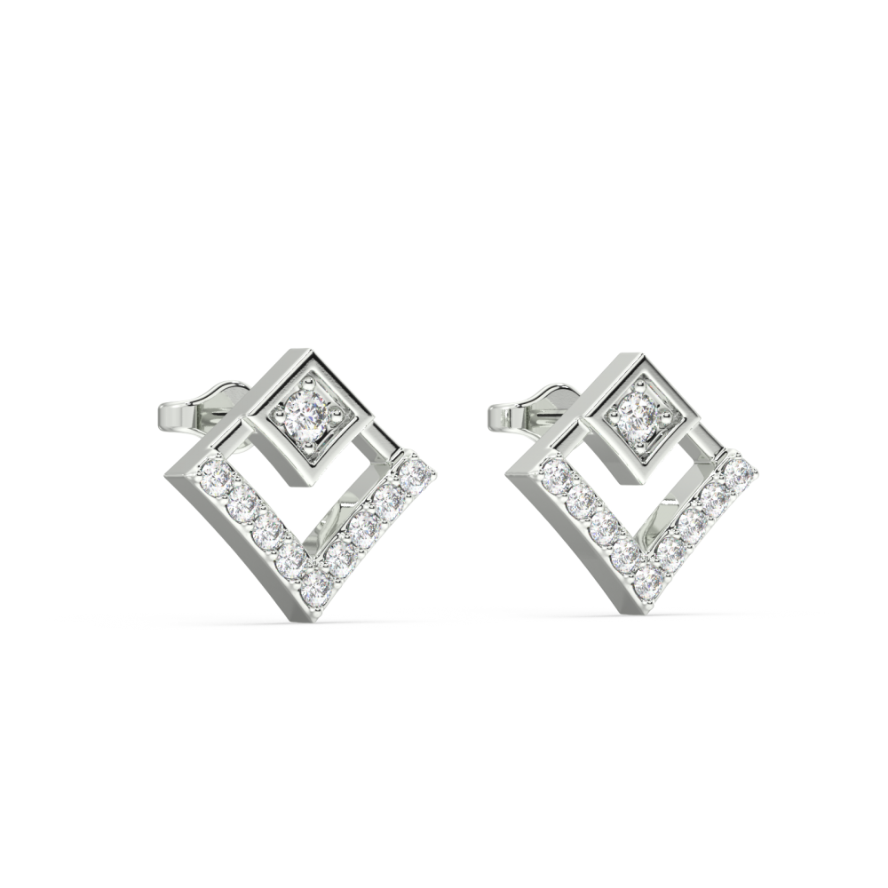 Cercei din aur alb de 14 K, cu diamante de 0.31 ct. Greutatea cerceilor este de aproximativ 2.54 grame. Dimensiunea cerceilor este de 1.1 cm