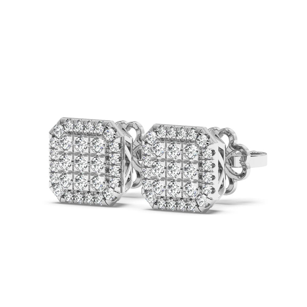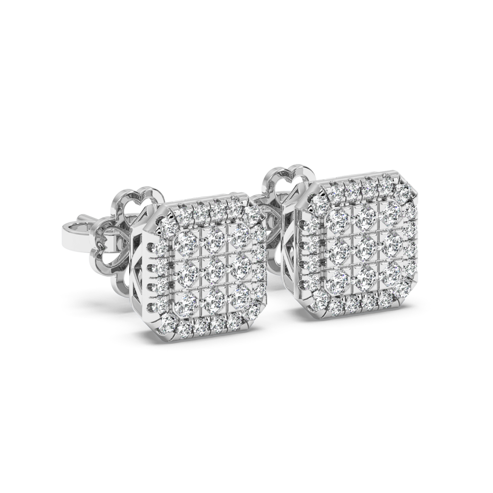 Cercei din aur alb de 14 K, cu diamante de 0.34ct. Greutatea cerceilor este de aproximativ 3.50 grame.