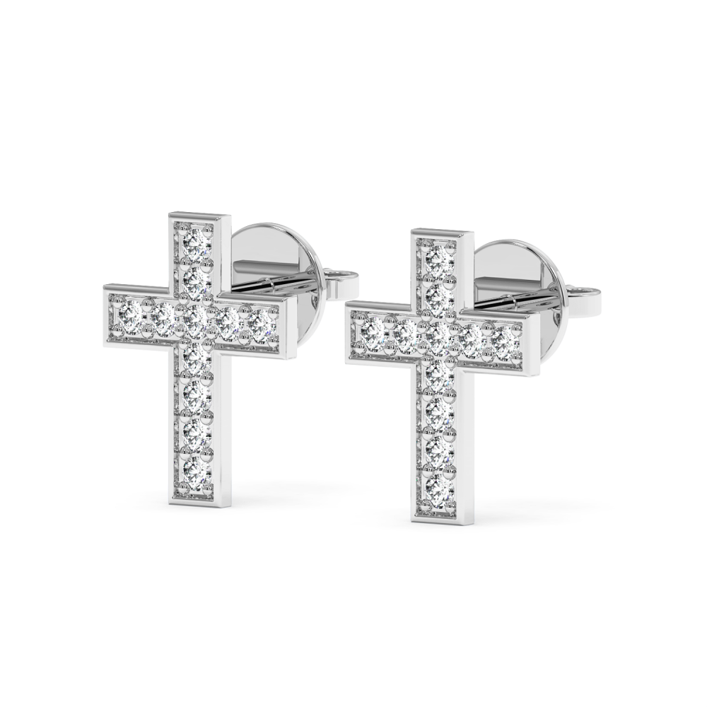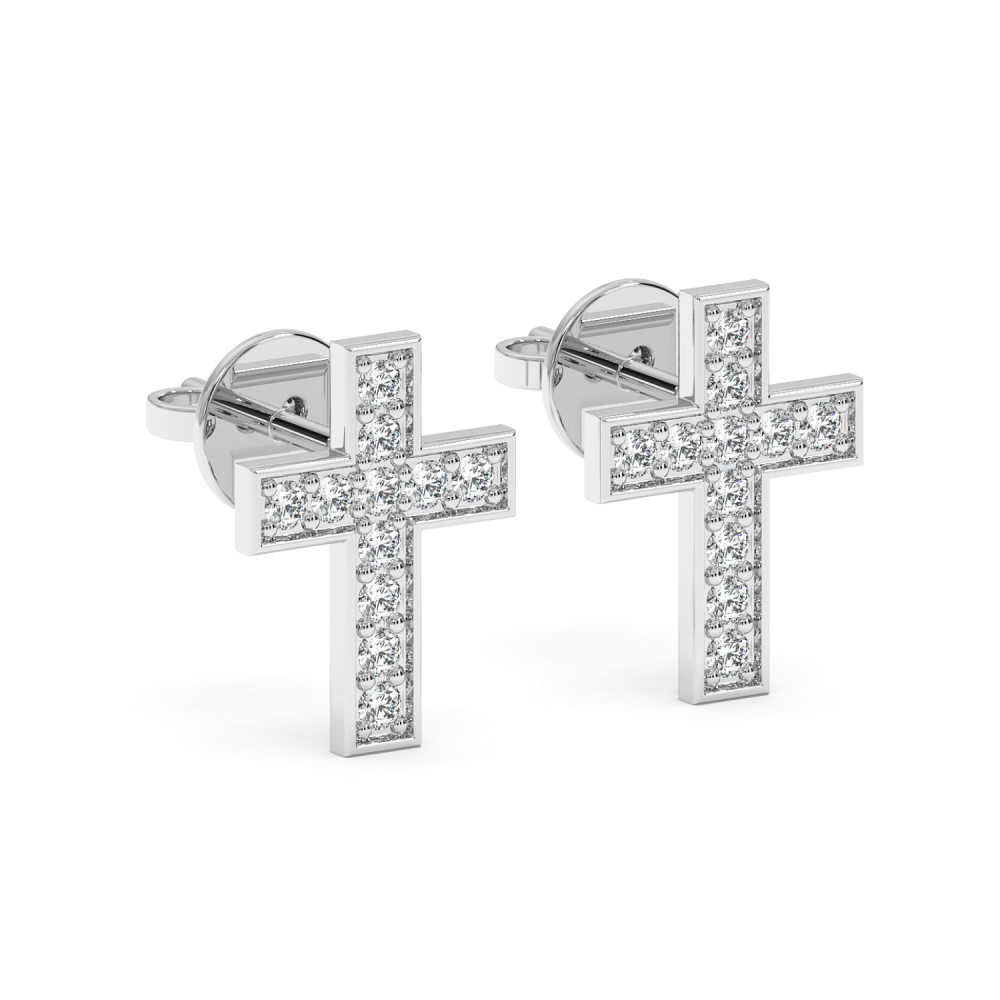 Cercei din aur alb de 14 K, cu diamante de 0.44 ct și o greutate de aproximativ 2.67 gr.