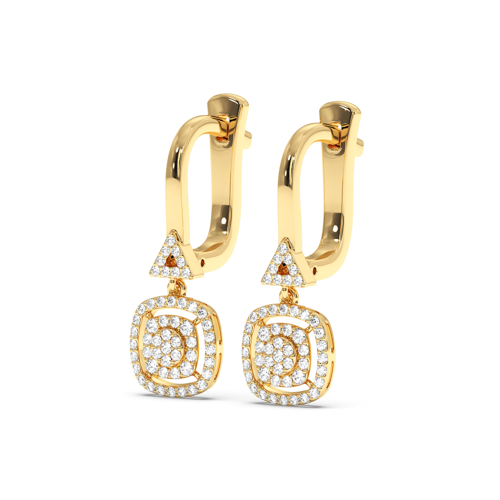 Cercei din aur alb de 14 K, cu diamante de 0.46 ct. Greutatea cerceilor este de 6.17 grame. Lungimea cerceilor este de 2.90 cm
