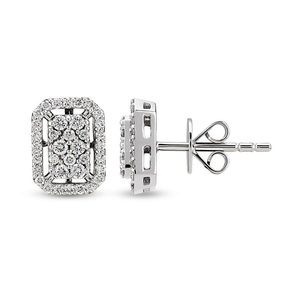 Cercei din aur alb de 14 K, cu diamante de 0.47 ct. Greutatea cerceilor este de 2.85 grame.
