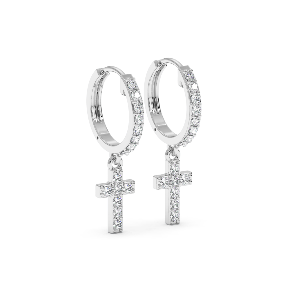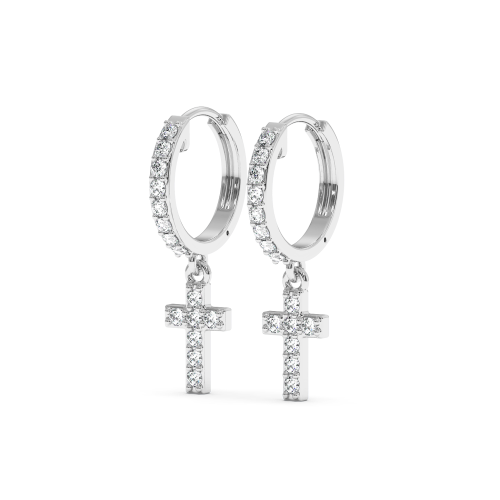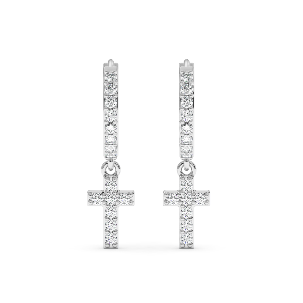Cercei din aur alb de 14 K, cu diamante de 0.49 ct. Greutatea cerceilor este 2.53 grame. Lungimea cerceilor este de 2.3 cm. Cerceii se pot face pe comanda si din aur de 18K, galben sau rose. Putem modifica design-ul in functie de bugetul dumneavoastra.